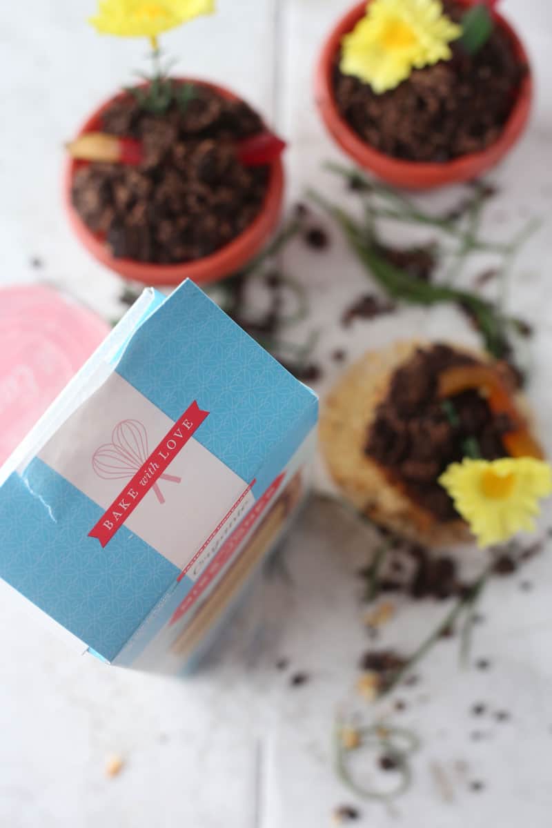 Luckily using Miss Jones cake mix you won’t have that problem. This is definitely a product I would recommend to any mom. Yes, moms, it still has your share of sugar and carbs, but the kids need to have a break every now and then. These Dirt and Worm Cupcakes are perfect for the summer and you can decorate them with edible flowers and gummy worms!