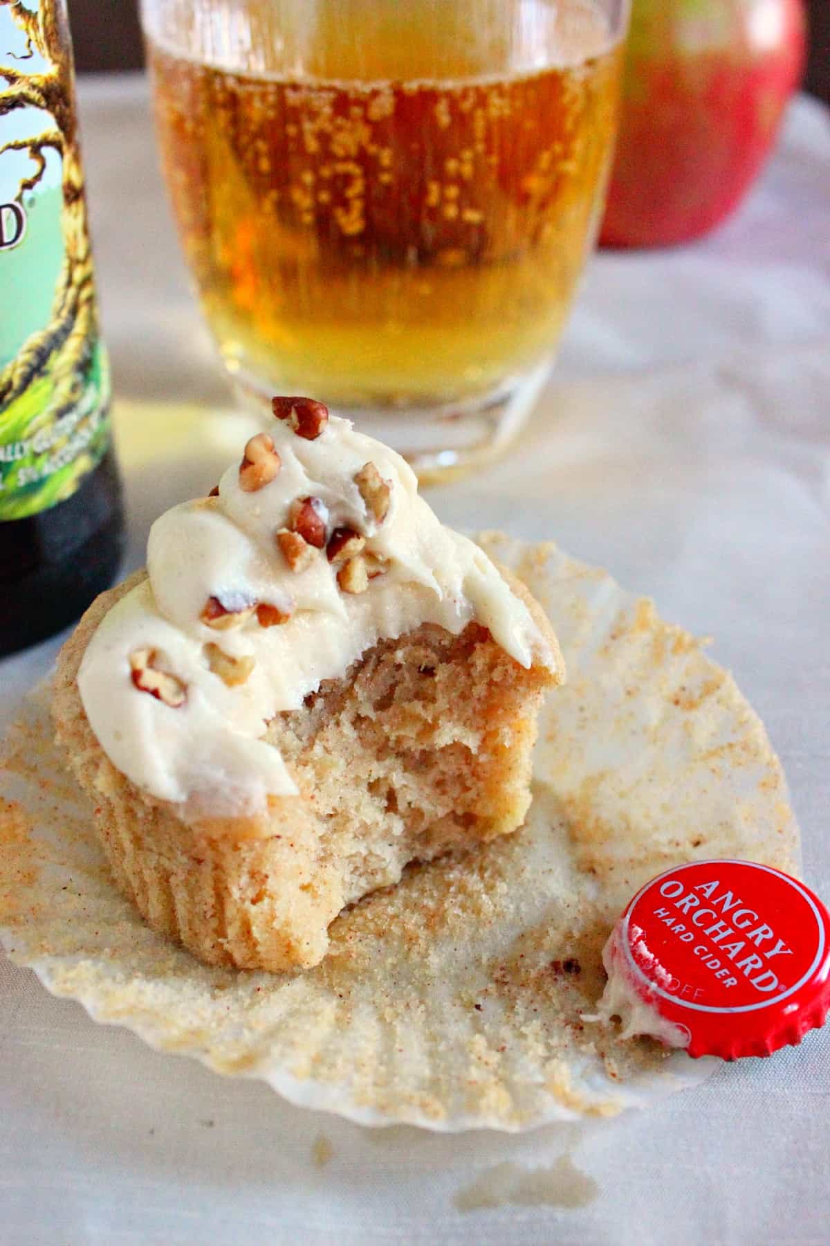 Adding Angry Orchard Apple Beer to your cupcakes enhances the flavor of these moist and delicious cupcakes. Topped off with a creamy cream cheese frosting, drizzled in maple syrup, and topped off with pecan pieces makes these cupcakes great for the fall.