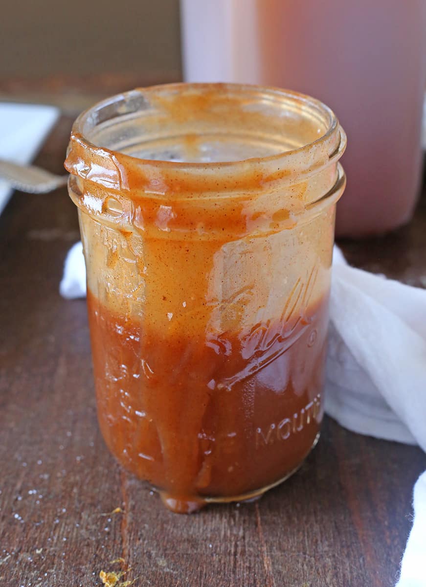 - In a saucepan, on medium high heat, add both sugars, cornstarch, cinnamon, nutmeg, apple cider, and lemon juice and bring to a slight boil. The sauce will thicken and allow to cook for 5-10 minutes or until desired consistency is reached. Remove from heat and add vanilla extract and butter and stir until butter is melted. Pour in an airtight container or mason jar.