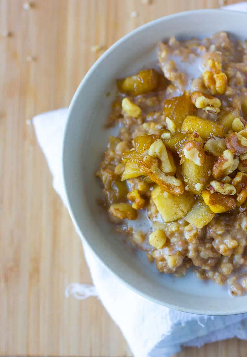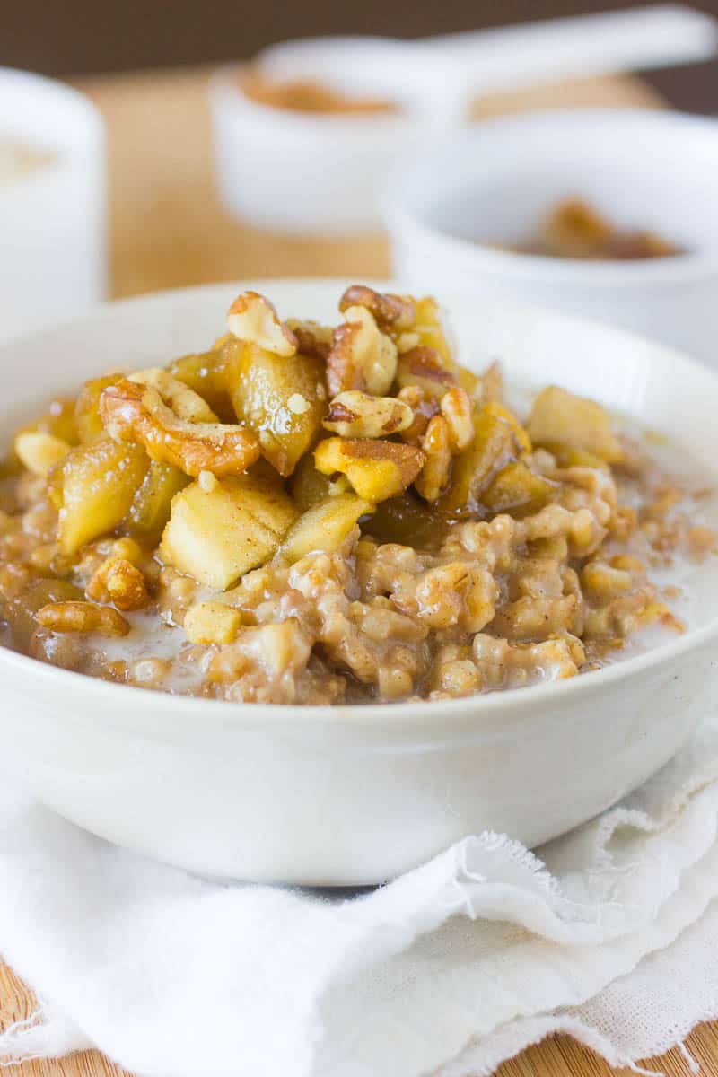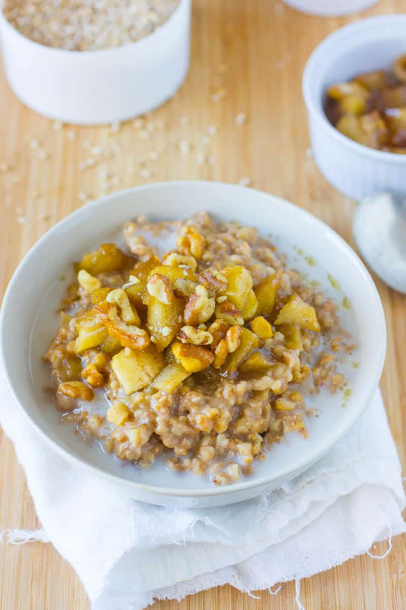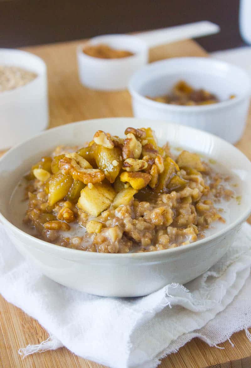 Make your steel cut oatmeal in a slow cooker and in a few hours youll have Apple Pie Steel Cut Oatmeal with delicious chunks of apples and walnuts.