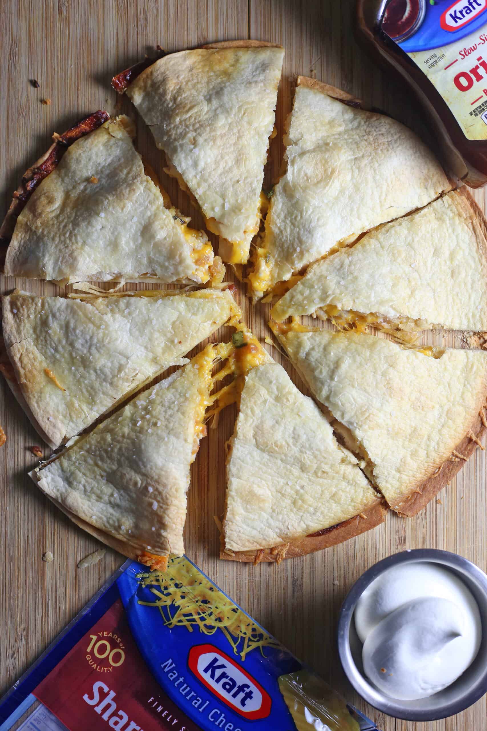 For all of my recipes, I like to take the approachable and affordable route to the ingredients. That is why you guys always see recipes on my blog where I am using ingredients and products by Kraft Heinz! Their food items are easily accessible at Walmart and pretty affordable no matter your budget. When making these quesadillas, you will need a few basic ingredients including Kraft® Barbecue Sauce and Kraft® Shredded Cheddar Cheese (which I love).