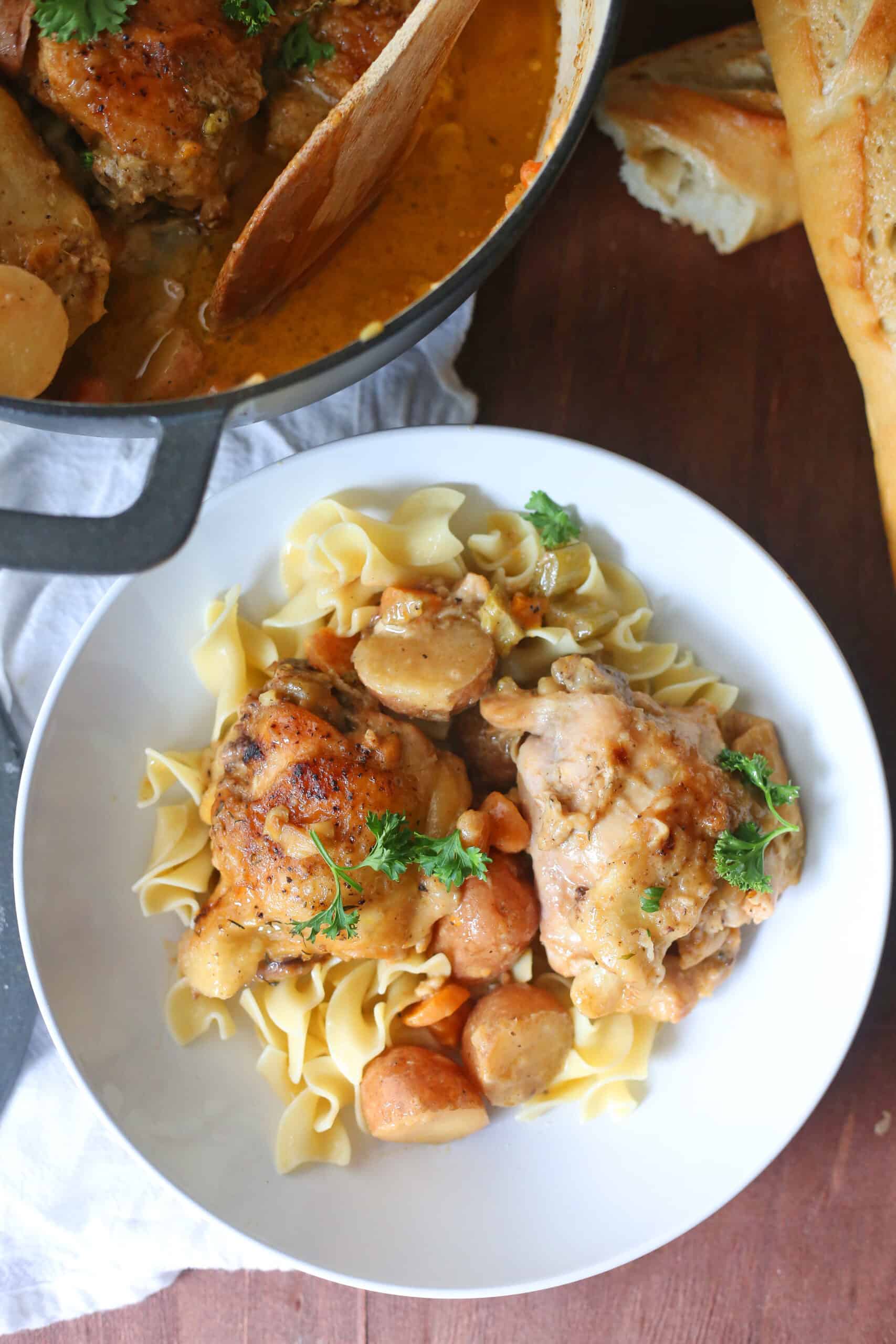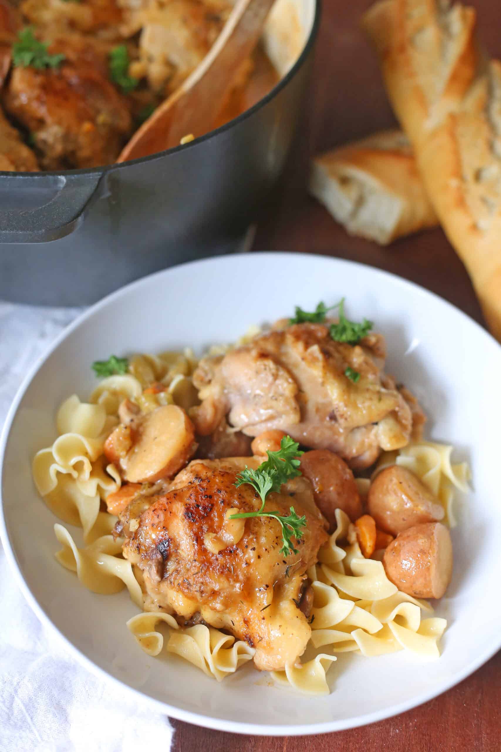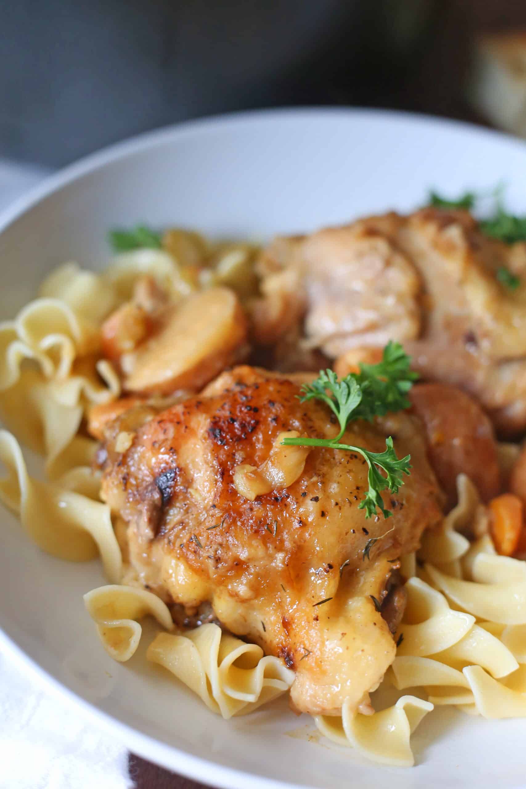 Now this is total comfort food that is perfect for the cooler months! I am LOVING that you served this with wide egg noodles too! I’m crushing hard on how crispy those thighs are with such juicy and tender meat!