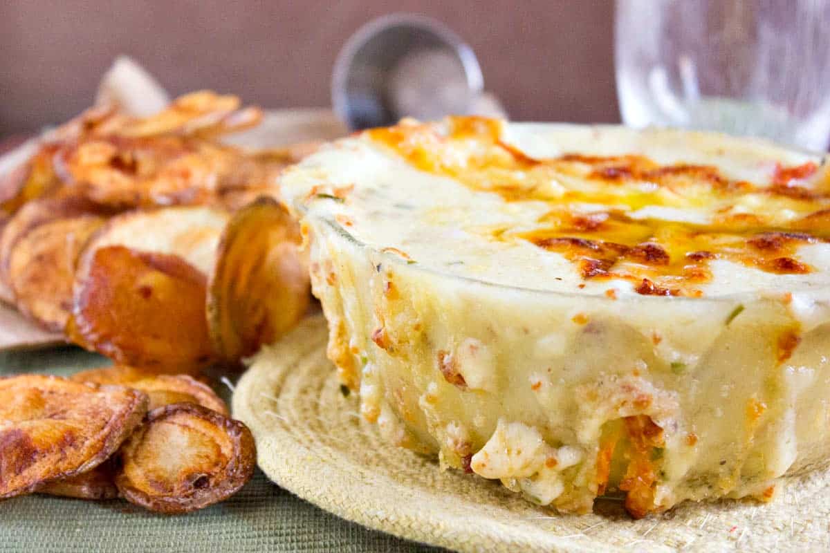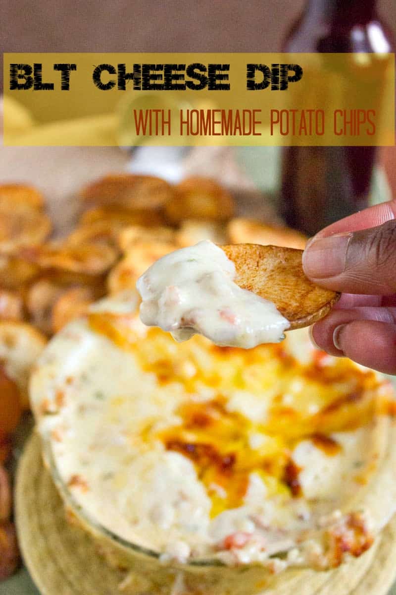 I don’t know where I got the idea to name this a BLT cheese dip, because although it has the bacon and the tomatoes but there is no lettuce. That is why I added the chives. I guess that is my “L”. You will love this cheesy and manly dip just as much as I do. However, if you are lactose intolerant make sure you take a Lactaid before diving in because it is saturated with all types of diary. You will not want to dip with anything other than homemade potato chips. It works out perfectly! The chips are perfectly crispy and has a really nice flavor to them that just works with the dip. You have to make this dip and then you have to come back and let me know what you think! Until then, Happy Football Season!