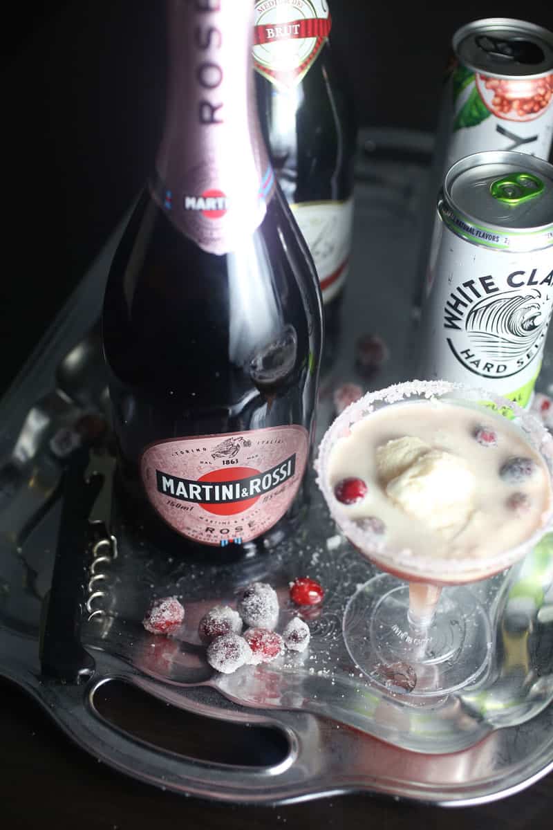 The holidays are meant for you to have fun and enjoy your friends and family. Not to be stressed and unprepared. When you are on the run for the holidays and need a quick and easy treat to share with your party guest, try this easy Boozy Cranberry Ice Cream Float using your choice of a sparkling champagne, such as Cook’s or Martini & Rossi or a hardl seltzer such as Truly or White Claw, which can be purchased at your local Discount Drug Store.