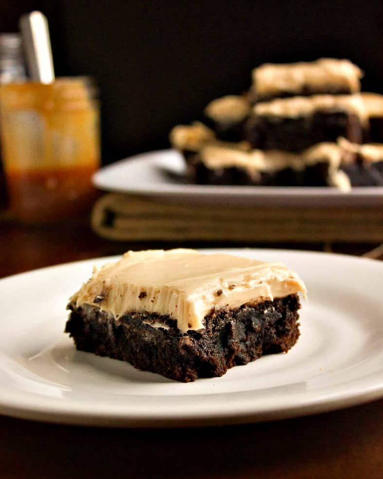 Bourbon Salted Caramel Frosted Brownies