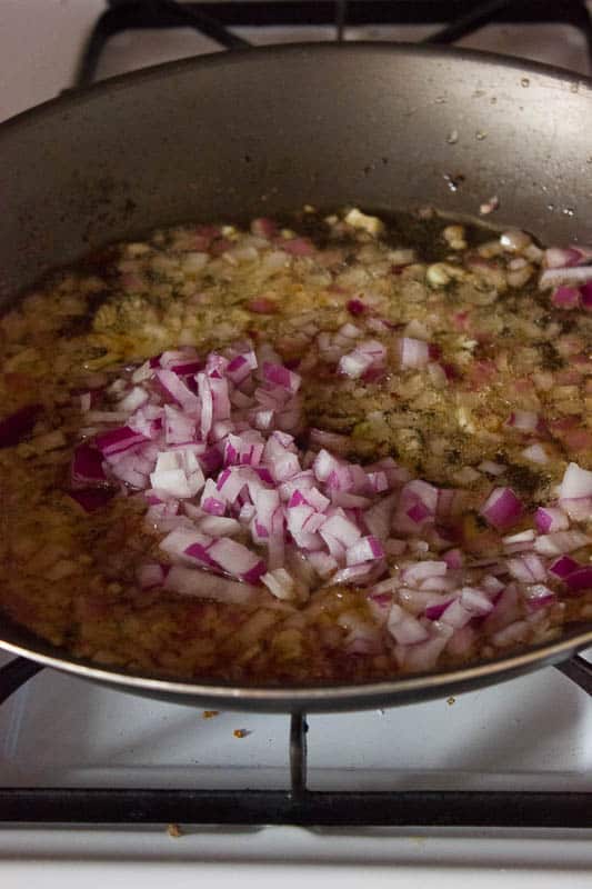 - Once the sausage is finished cooking, remove from skillet, leaving the fat, and turning to a plate lined with paper towels. On the same level of heat, begin to cook the onions until it becomes translucent, about 5 minutes. Now, add the minced garlic and cook for about 2 minutes ( you don’t want the garlic to burn).