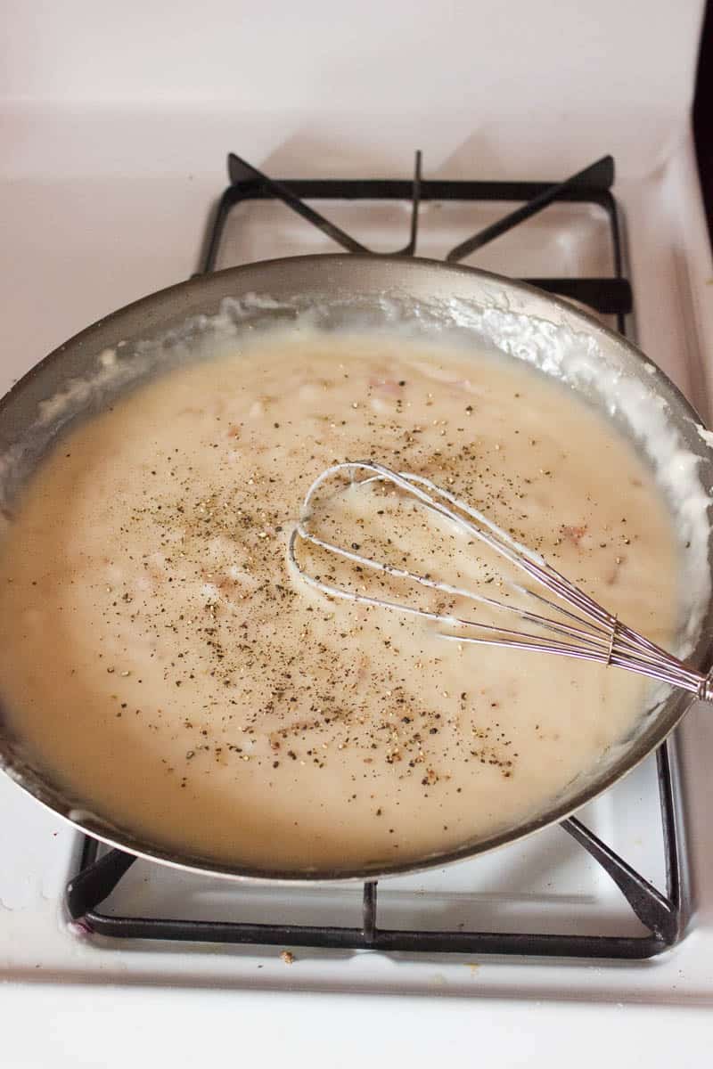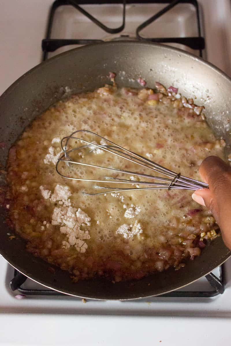- Sprinkle the flour, about 2 tablespoons at a time, slowly, onto the onions. Interchangeably adding a little water to make sure clumps don’t form. Go back and forth between the flour and the water until they are both well incorporated mixing the entire time. The gravy will thicken. If it is too thick for you liking, add a bit more water until it is to the consistency you want. One the gravy has reached your preferred consistency, return the crumbled sausage to the gravy, season with salt and pepper, and add a dash of hot sauce to your liking. The reason I think you should season at the last minute is because the sausage and the fat from the sausage is going to carry in flavor itself and you may like it the way it is. Use your taste buds to lead you.