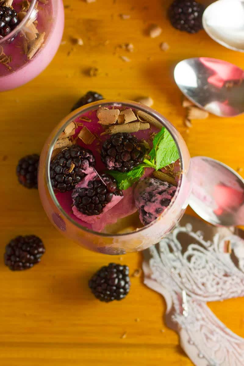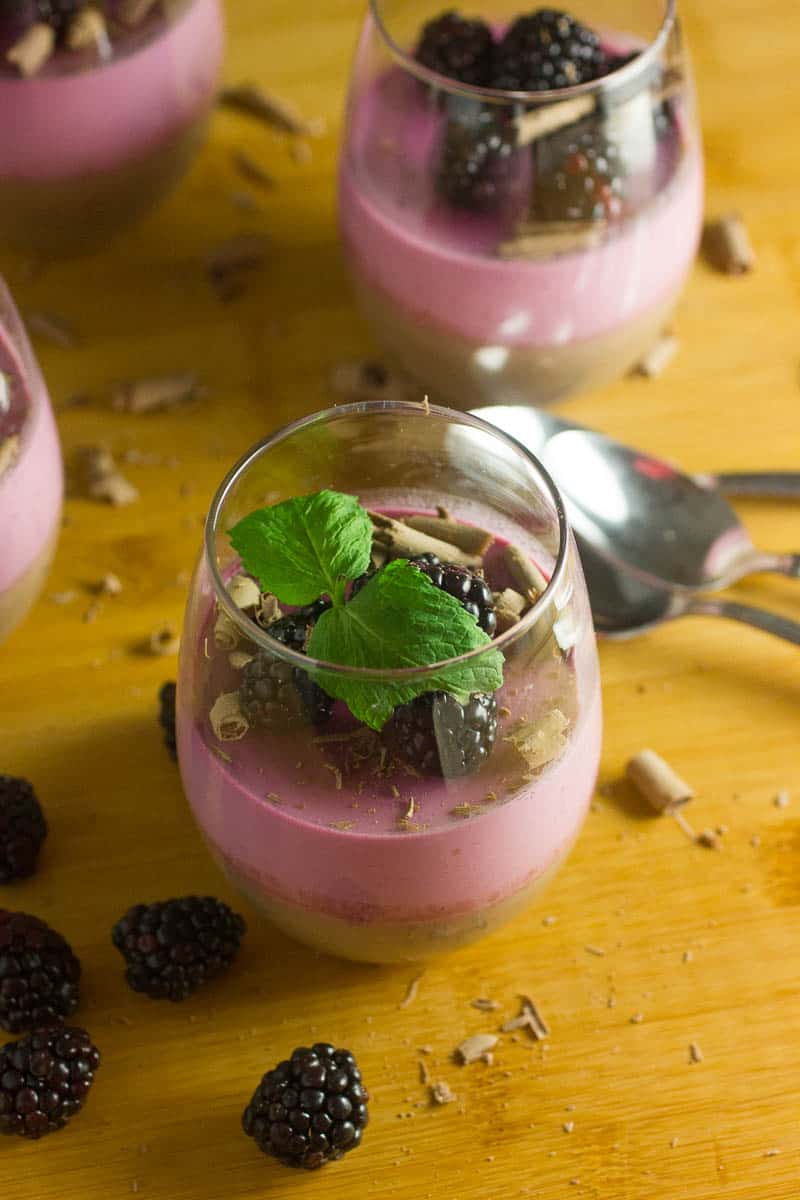 This Blackberry & Chocolate Panna Cotta is rich, smooth, decadent, and will leave you breathless. Made with fresh blackberries and sweet chocolate.