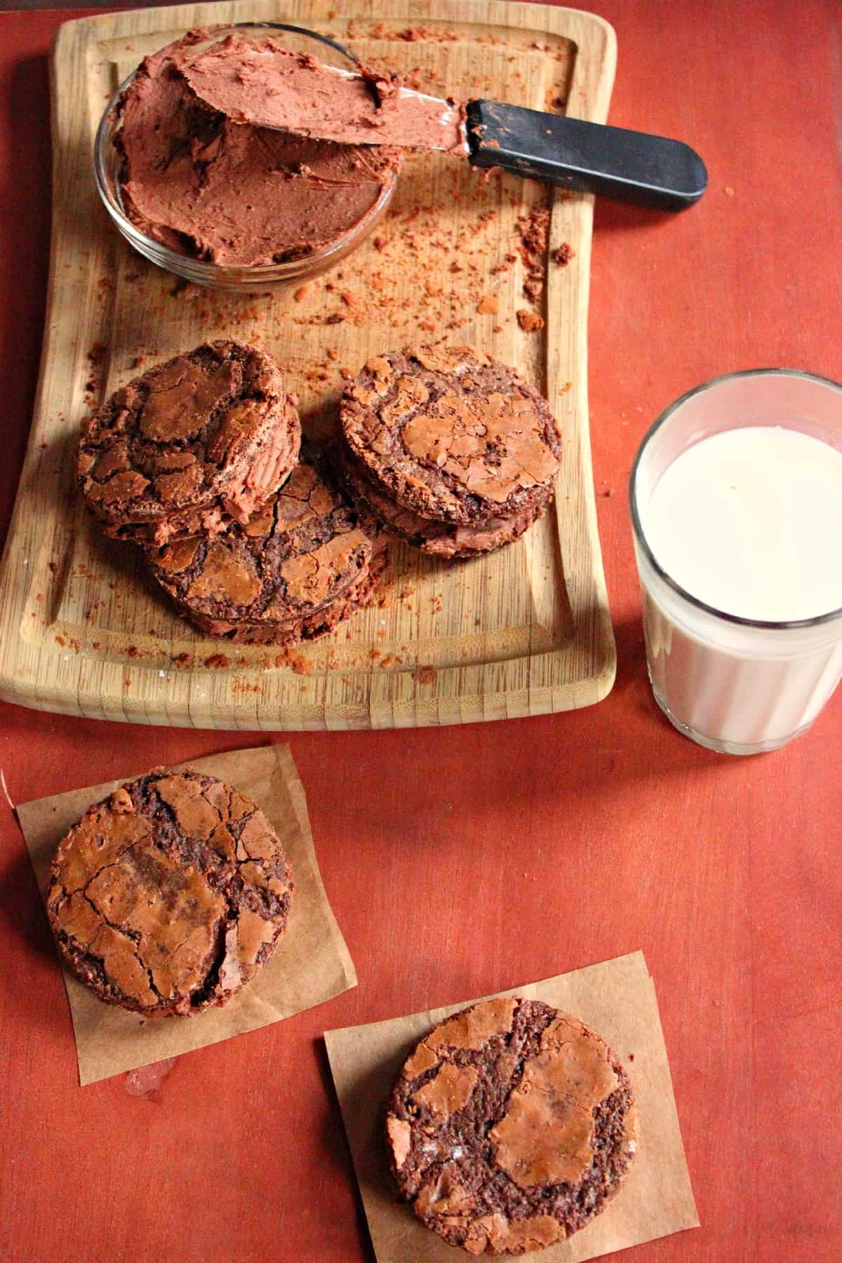 Brownie Cookie Sandwich is an idea I came up with when I was acting like a mad woman really wanting something sweet and chocolatey. I didn’t really know what I wanted exactly, so I decided to make these cookies in hopes that it would cure my entire craving. So let’s see….