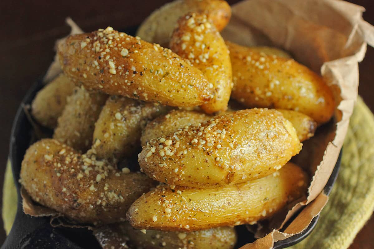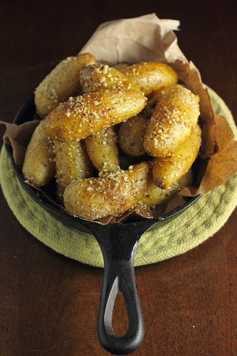 The one thing I feel I don’t have enough of on my blog are side dishes. I like them; I even love creating them; but for some reason I never share them until now. I think sometimes it can be difficult coming up with different side items to have for dinner. Think about it. What does the average dinner plate consists of? Typically, it’s a meat protein, vegetable, and a starch. Now you can dress all three of those meal items anyway you want but it typically follows the same module. There is nothing wrong with that module except broccoli and brown rice can get very old, very fast. So can mashed potatoes and green beans. If I am going to cook a meal in that fashion I like to shake things up a bit. I like to make dishes that are easy, yet delicious; wholesome, yet somewhat guilty; and cheap, yet “fancy”. That is why I am going to start my first petition to get these fingerling potatoes on a steak house menu somewhere.
