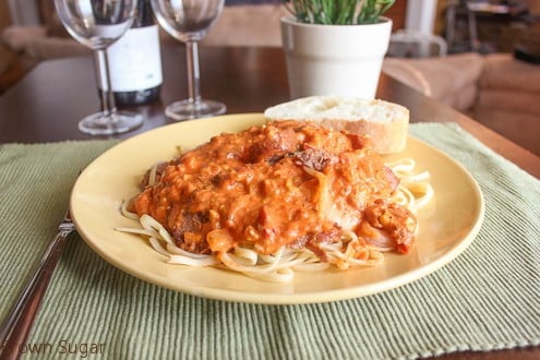 When I knew I wanted to make this dish, it took me 2 weeks to figure out what type of sauce I wanted to make with it (…{singing}”Caught up in the rapture of love” listening to Anita Baker). I didn’t know if I wanted to make a white wine sauce, white sauce, vodka sauce, marinara sauce, or what! I was looking through a few cookbooks of mine determined to find the perfect sauce or, at least, an idea that I could use and make my own. And guess who came to the rescue? The food bloggers Dalai Lama, Ree Drummond AKA The Pioneer Woman. I took her simple tomato pasta sauce and added my own cajun flare.