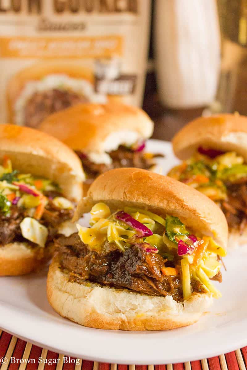 - Place some of the pulled beef on the slider bun and top off with some of the Asian slaw.