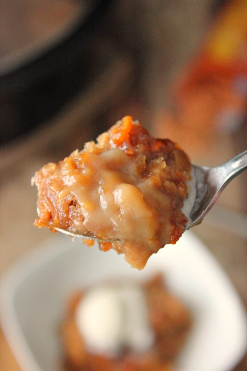 - Serve immediately – This cake is best enjoyed warm, right out of the crockpot