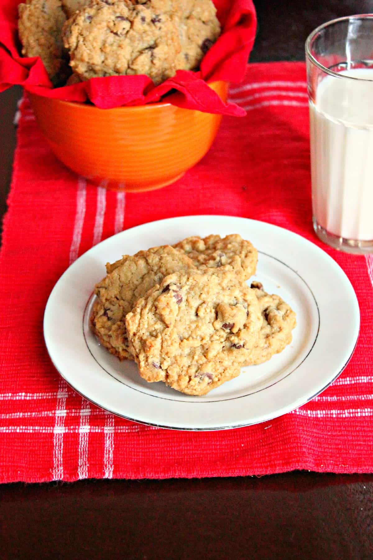 Can you feel the magic of the season? I can! I love the holiday season. In Cincinnati, there is so much stuff to do. There is ice skating at Fountain Square, Festival of Lights at the Cincinnati Zoo, and several holiday dinner parties around the city. One thing that my mom use to do for us when we were younger was make holiday candies and sweets for us on Christmas Eve and we would stuff our faces with sugar and hot cocoa and watch the Christmas specials. Now, because we are all grown up, my mom doesn’t love us anymore. So we no longer do those things. But I am trying to talk her into starting up that tradition again this year. If you do anything with your family that is similar, these cookies will be a perfect sweet treat that everyone will enjoy. I think making cookies around the holidays is a defaulted American tradition that Americans have been doing since….whenever. I plan to continue with this tradition my friends and family because it does seem to bring everyone happiness and its just something fun to do. I think these Chocolate Chip Oatmeal Cookies are a great start to practice.