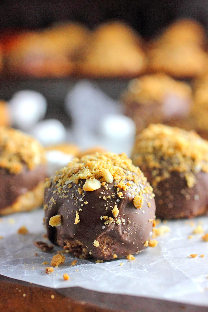 I am in love with these Chocolate Covered Fluffernutter Balls! Like seriously.