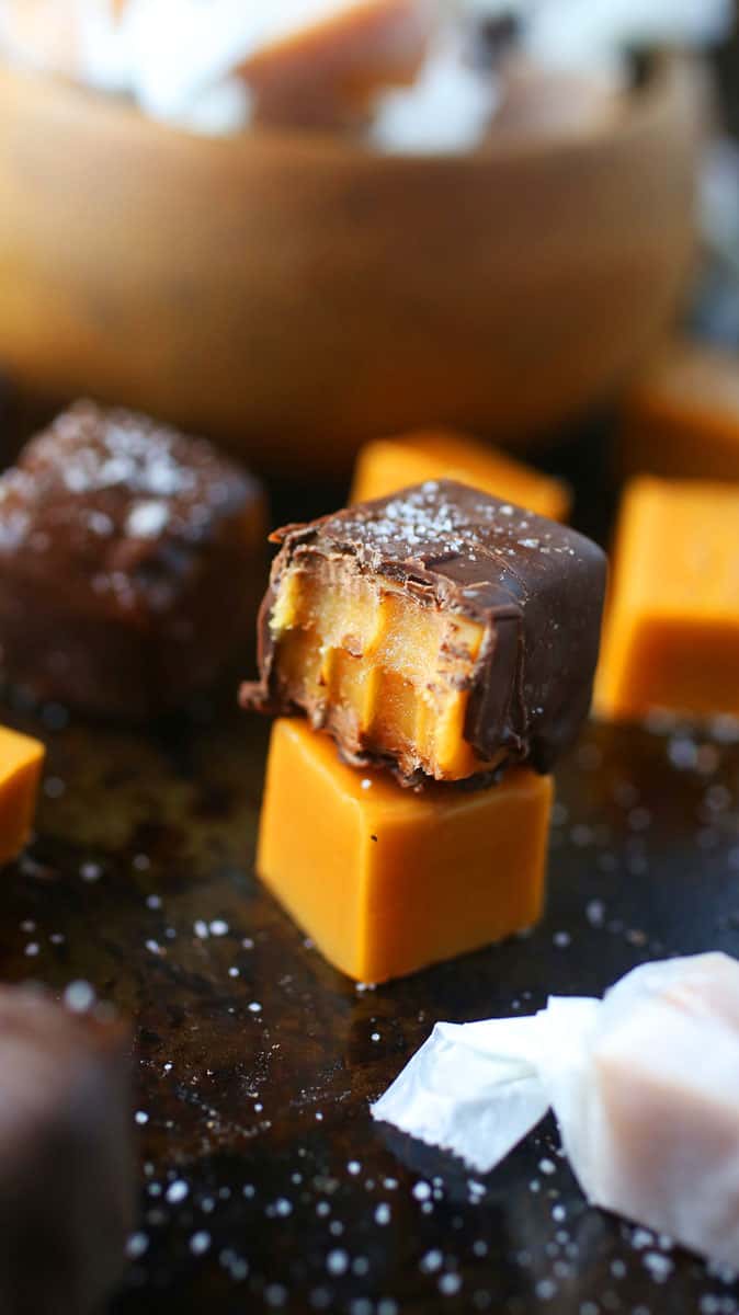 Make these Chocolate Covered Salted Caramel Chews as a great gift option for special holidays or occasions. These candy chews are incredibly easy to make and taste as if they came from an actual candy factory.