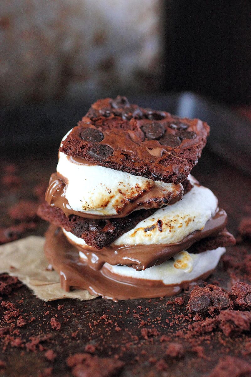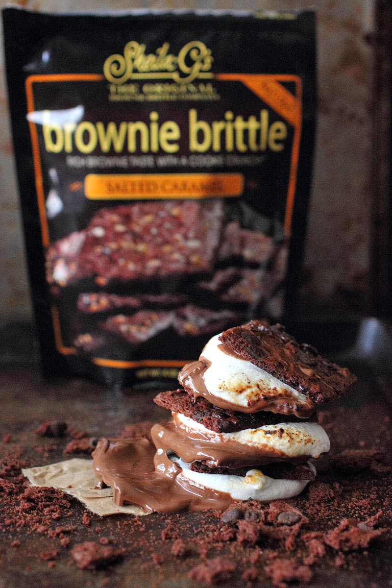 There are many way s you can use this brownie brittle. You can use it to serve on the side of fondue, serve along side of a dessert dip, or you can even use them in replace of graham crackers for S’mores. Let me tell ya’ll about these damn Smore’s. I hope you notice, this is the second time that I am using loose words to talk about this product. That is how damn good it is. Anyway, when I used the brittle for Smore’s I felt something so indescribable, unimaginable, and out of this world that my eyes rolled into the back of my head and my toes immediately curled underneath my feet. A-MAZE-BALLS! The crunch from the brittle is different from graham crackers, which is what makes it better. Not to mention its a Brownie Brittle. Hello?! It is so decadent, chocolaty and rich that you don’t care about anything in that moment except how good that damn Smore is to you. I know summer is almost over but you don’t even need summer to enjoy a smore made with Brownie Brittle.