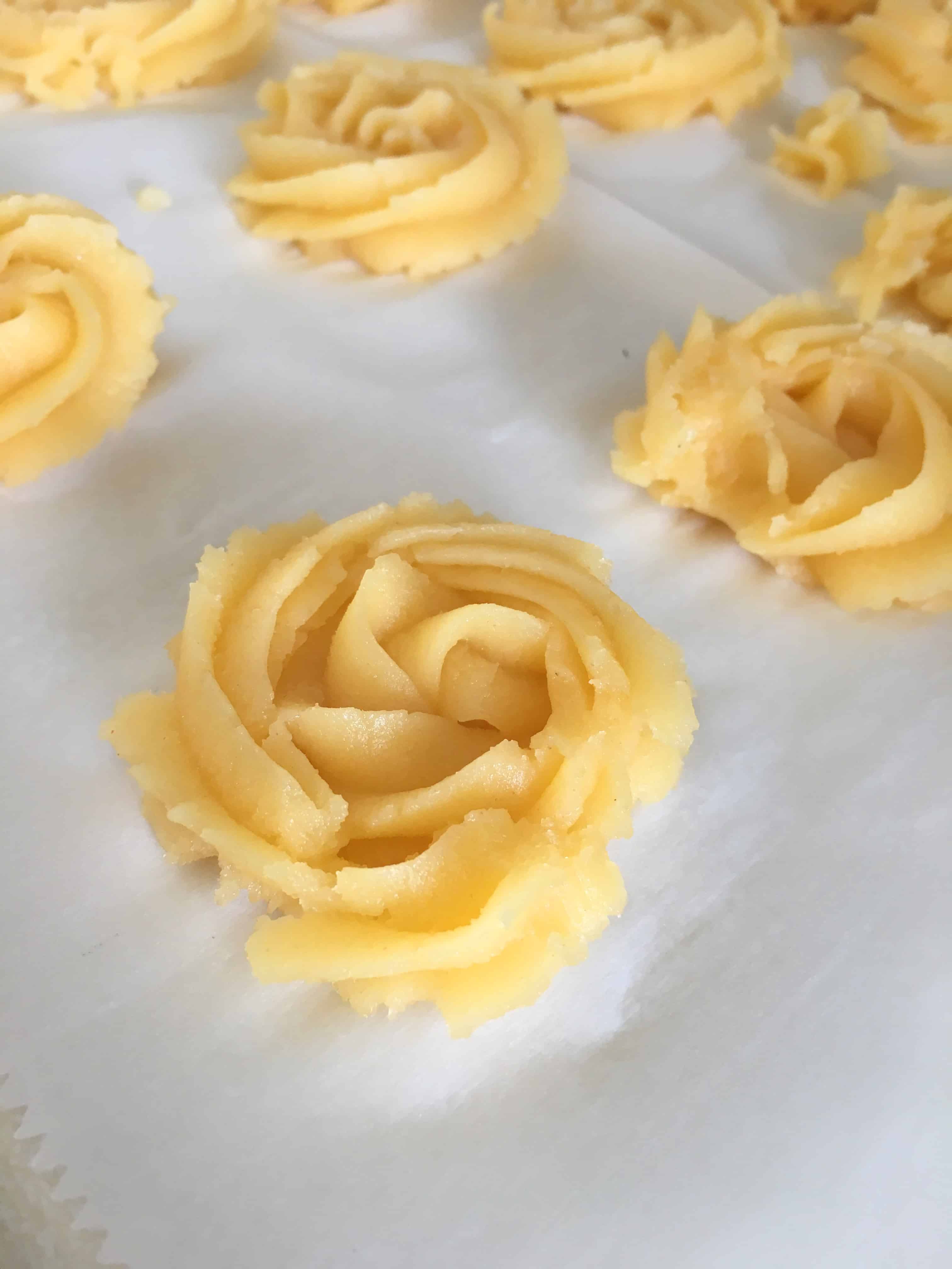 - In a small bowl, mix together the butter and shortening. Slowly add the powdered sugar and vanilla extract. Continue to mix until creamy. Spread on churro and place another churro on top.