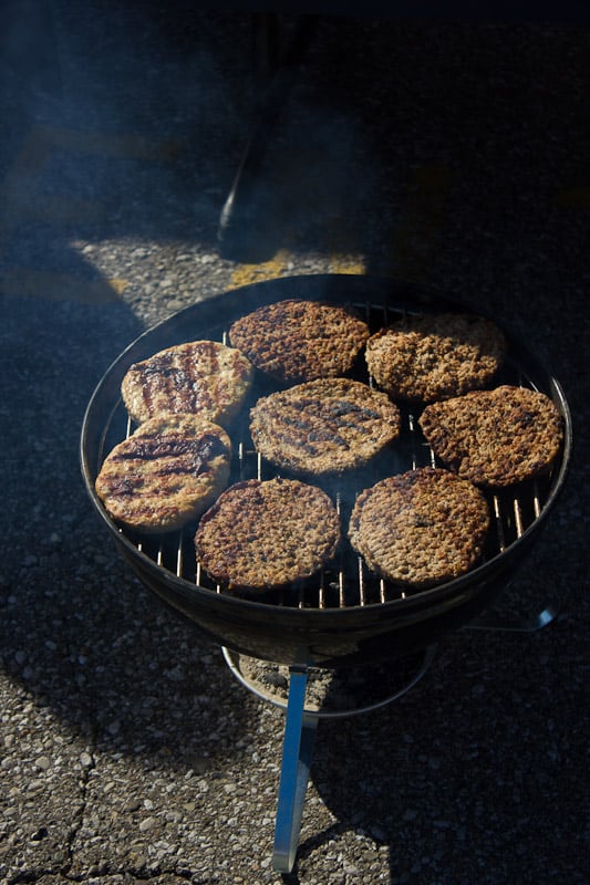 These are pictures from our first tailgating experience last year. I was trying to make bacon wrapped jalapeno poppers, but they didn’t come out so well.
