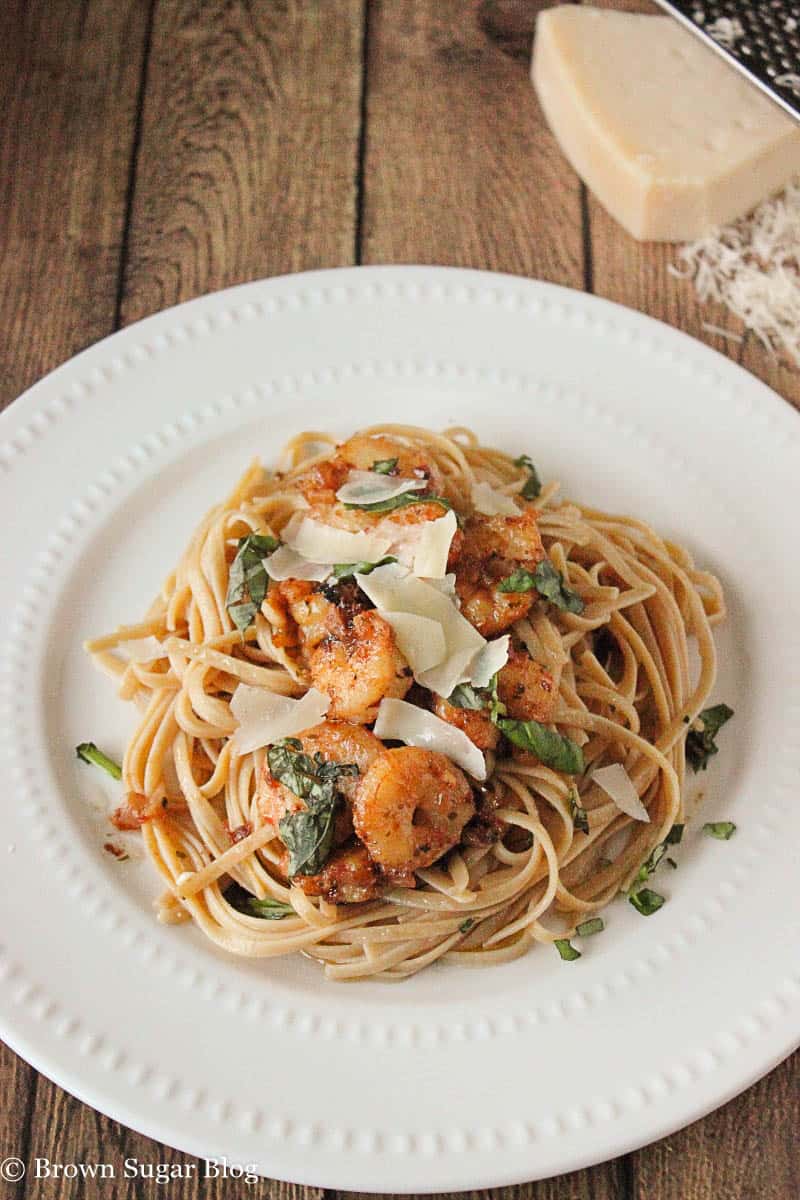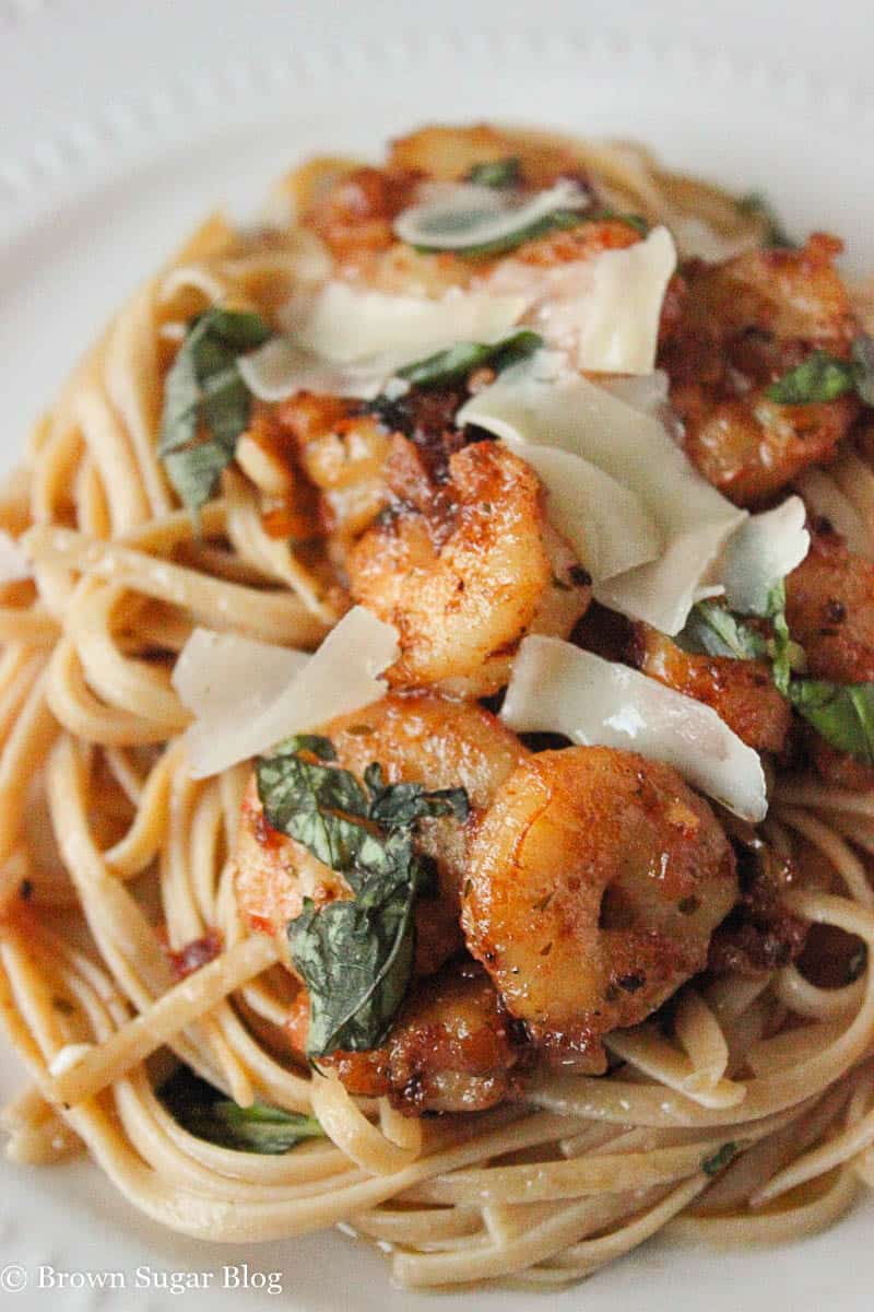 Shrimp Scampi! It’s good right. The garlic, the wine, and the lemon juice works really well together right?! When I made this a couple of weeks ago, I seriously “bashed” this dish! It-was-awesome! Would you believe me if I told you that this was my first time eating Shrimp Scampi? Yea man. I know I’m late in the game and this is now one of my favorite pasta dishes. You know, there is something strangely sexy about this dish too. If I came home and my man was in the kitchen cooking up this dish, with an apron around his waist,…..HONEY! I can’t even tell you what I would do. No, like seriously I can’t tell you what I would do. I have elders and teenagers looking at my blog now. Let’s just say. I would scampi his shrimp right after dinner. LMBO. Too much? Oh well.