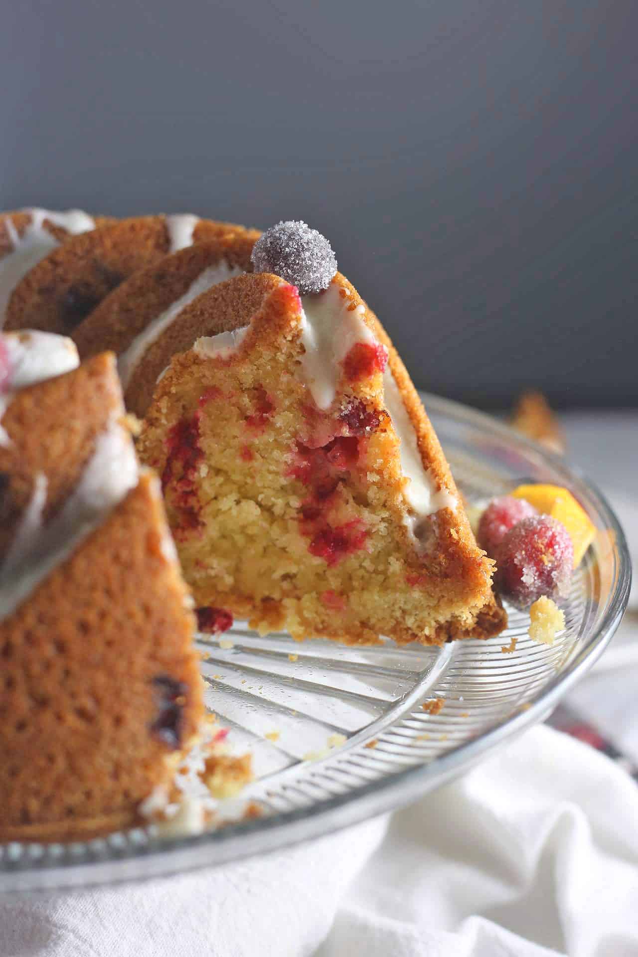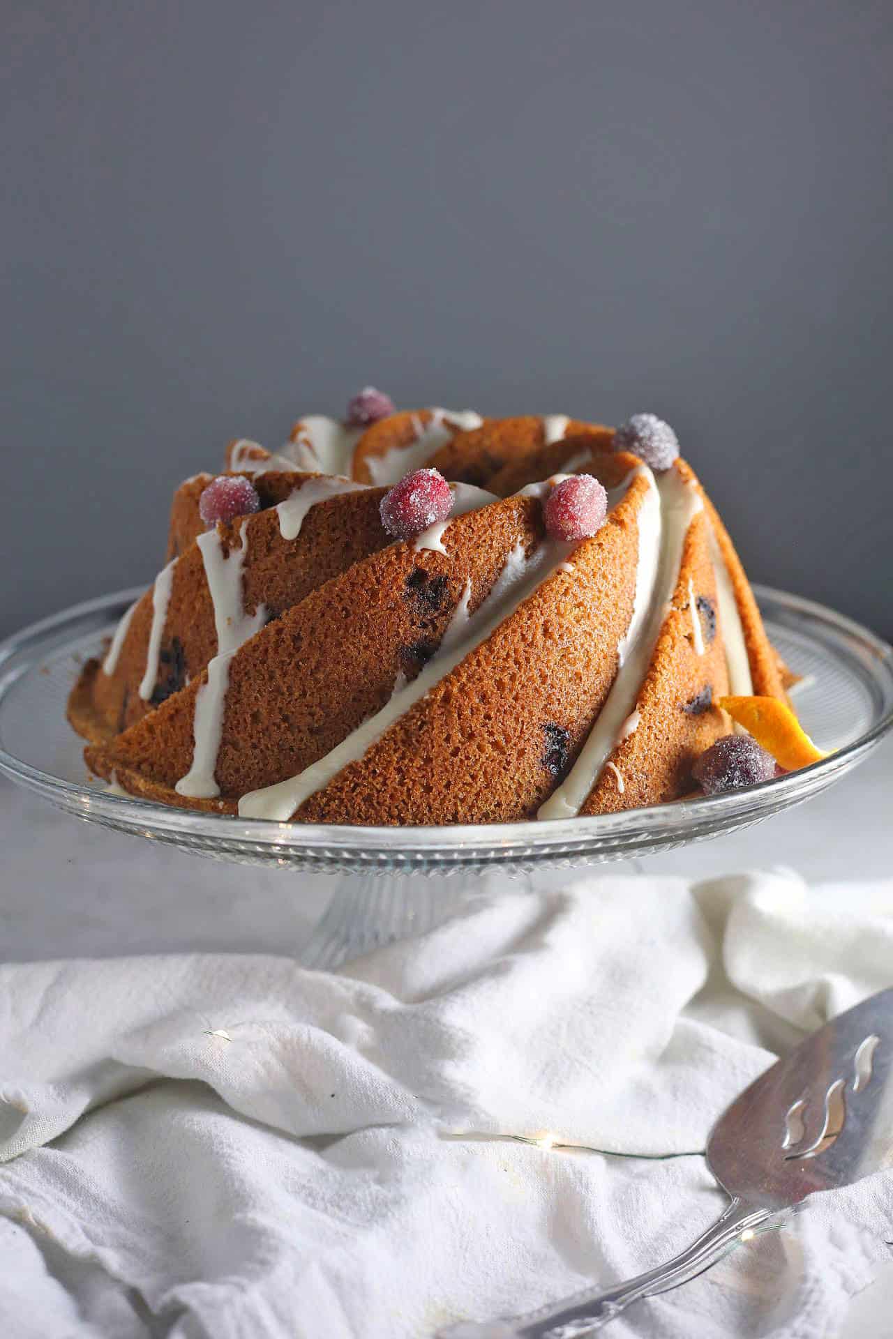 Omg, this is the most beautiful bundt cake I’ve ever seen. The addition of sugar coated cranberries on the frosting is so pretty in your photos and the orange zest made my kitchen smell so good while this was baking!