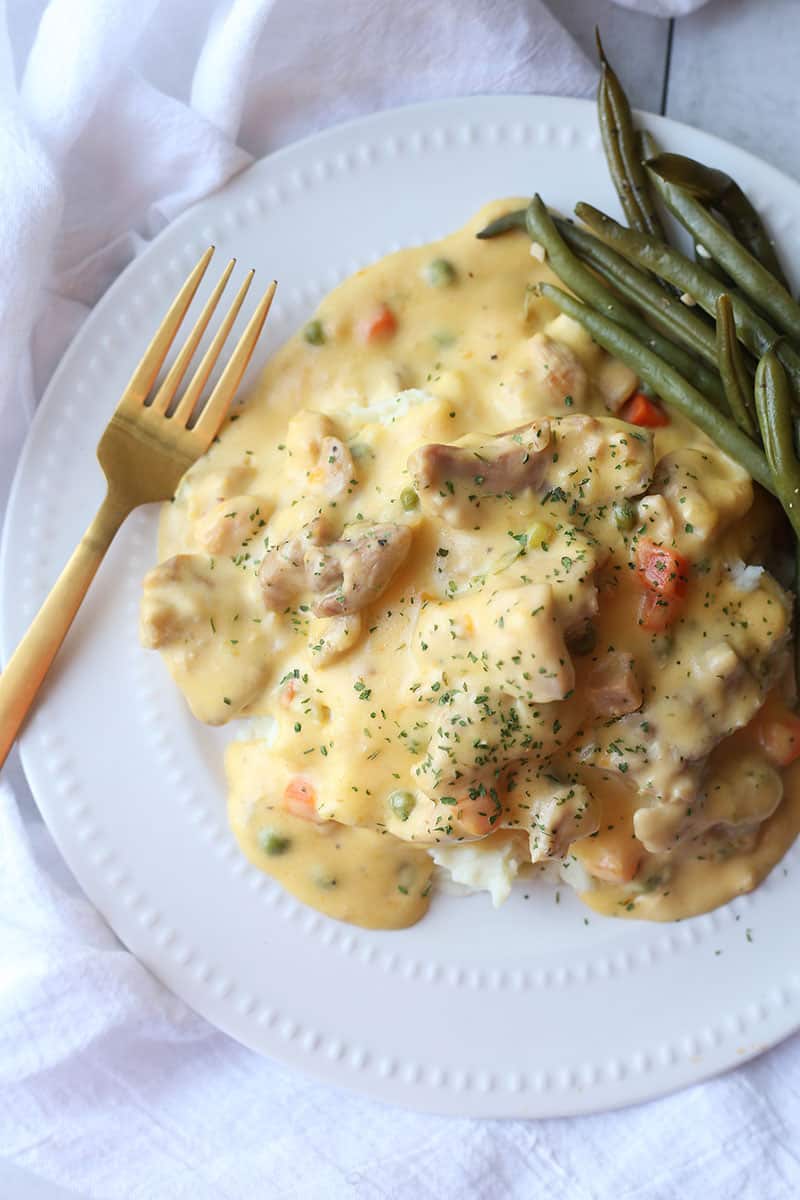 This Creamy Chicken Skillet Recipe is the meaning of easy comfort food recipes.