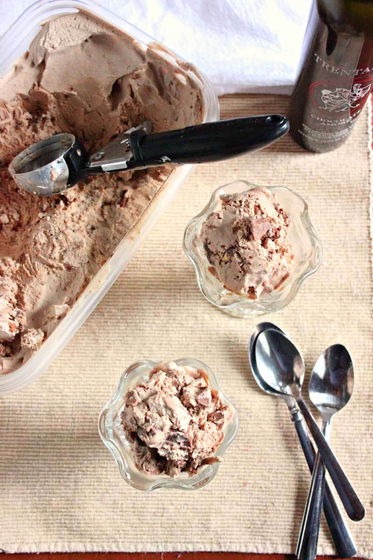 This recipe is perfect for the summer and for the sophisticated ice cream lovers. Why? Because I added some chocolate port I had at home. However, I can’t take credit for the name of the ice cream flavor. I owe it to a faithful Facebook follower of mine. But aside from the name, the best thing about this ice cream is that you don’t have to have an ice cream machine! You read right, no machine required. I like making cooking and baking easier, not harder. If there is a short cut or a simpler method to make something I will figure it out and share it with you. If you like ice crea, I do think yu shuld invest in a quality ice cream machine. But if your a “some-timey” ice cream person like myself, use this method and you will be fine.