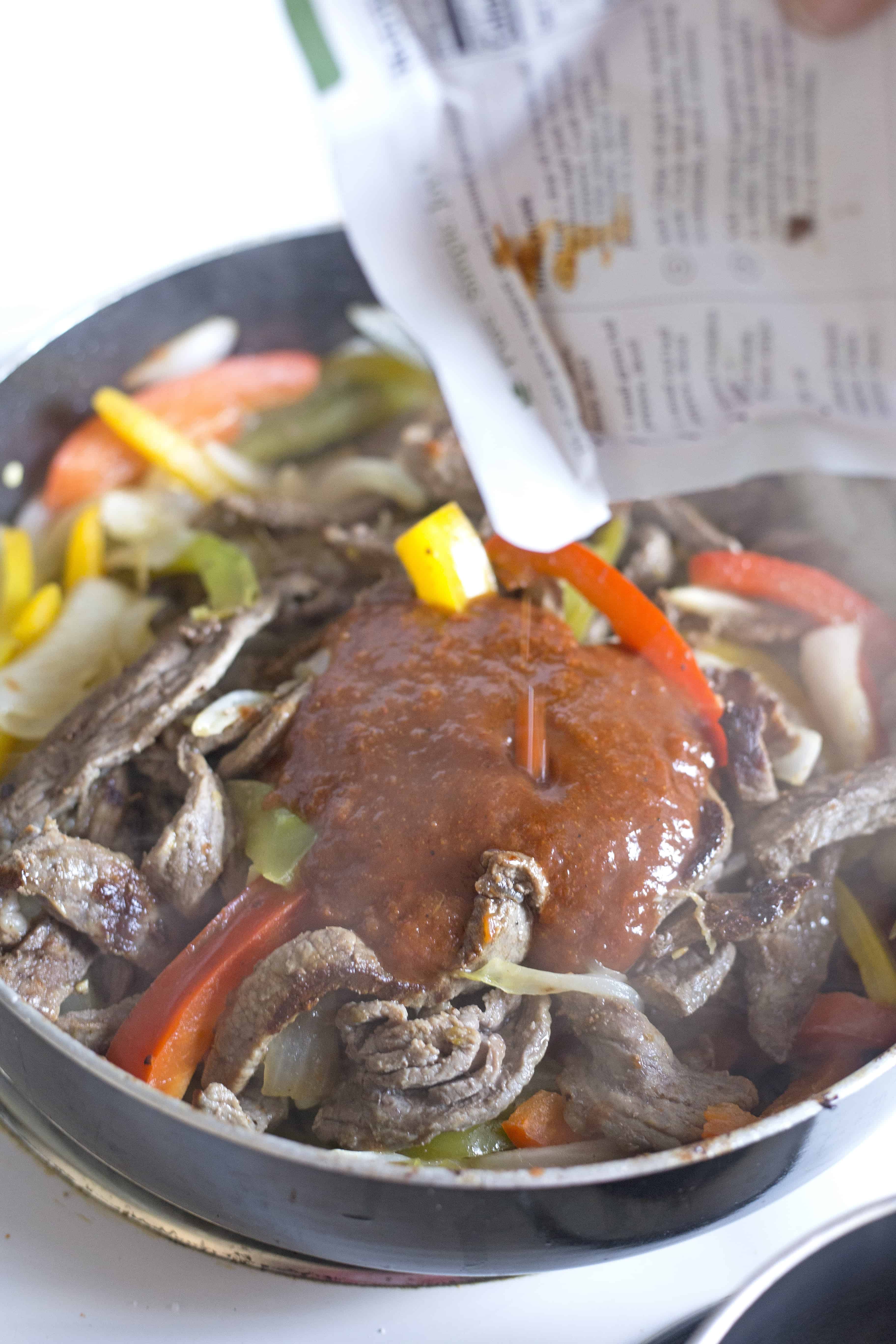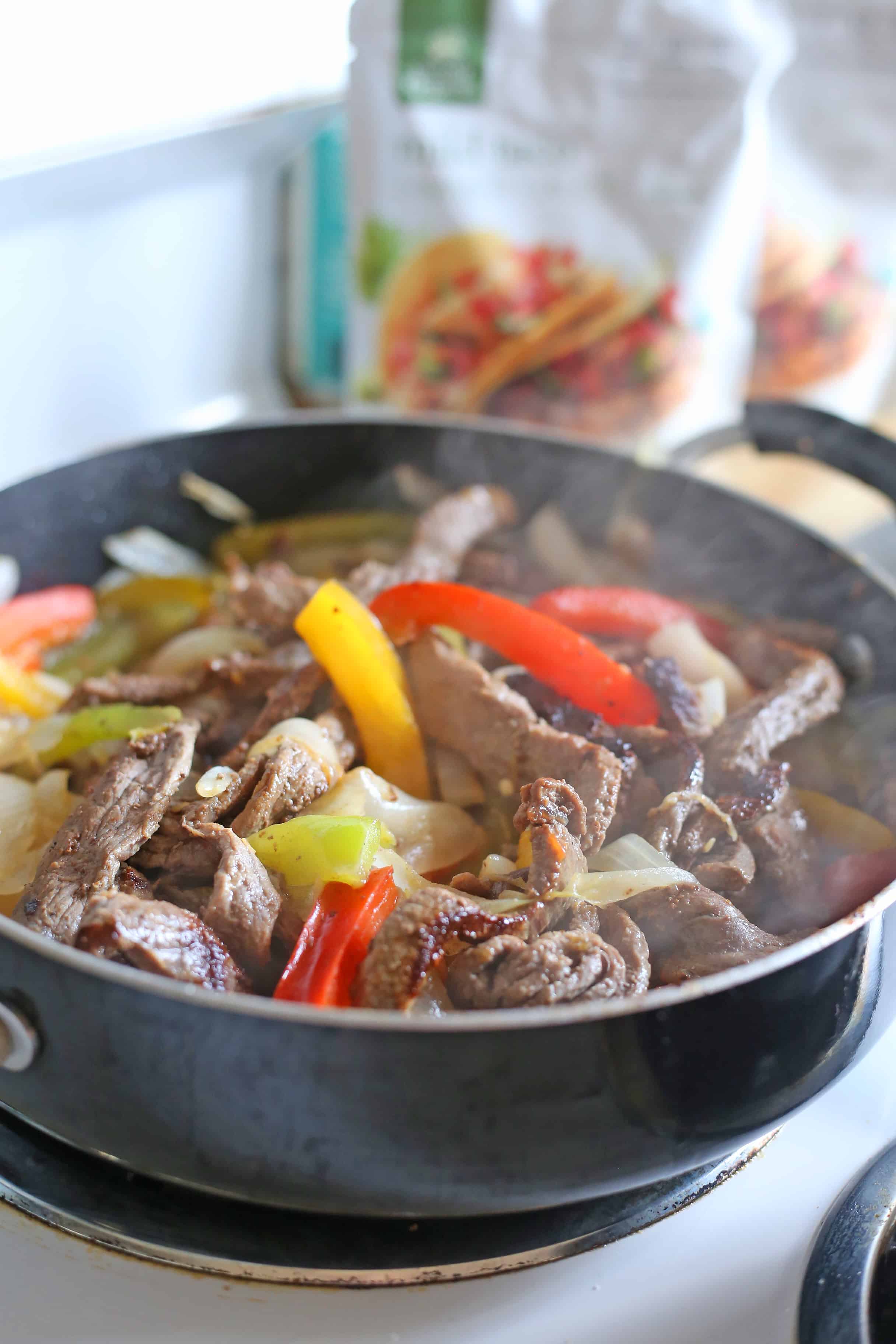 This Easy Beef Fajitas recipe is made using Simply Organic Beef Fajita Sauce. You don’t need anything else to give these Fajitas flavor!