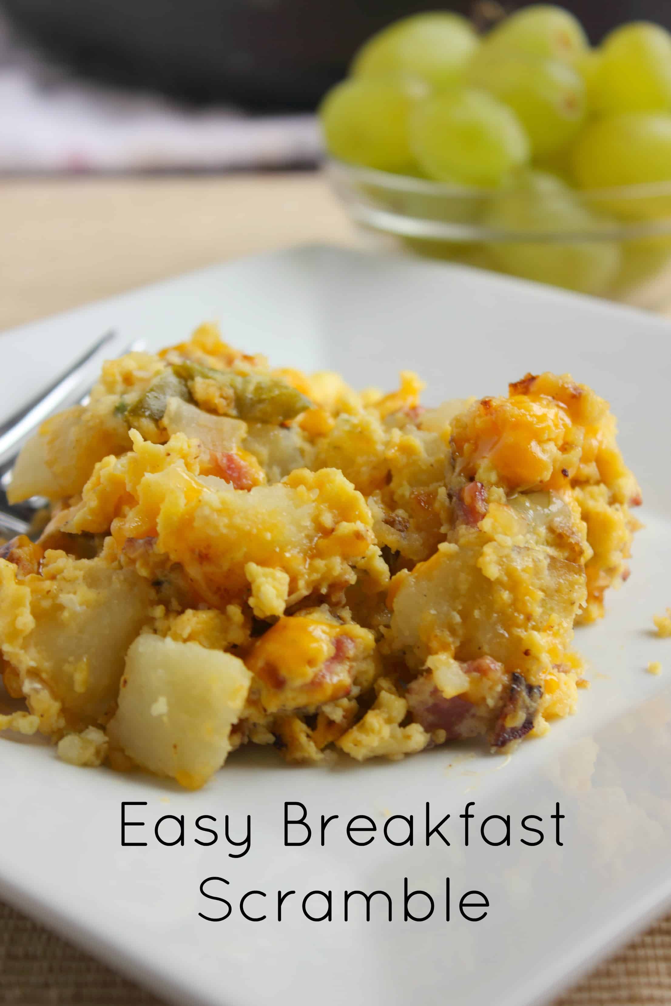 In case you have never had a breakfast scramble, it is basically a bunch of good stuff scrambled together with eggs. Its like taking three different dishes and combining them into one. This scramble has eggs, potatoes, and bacon. Simple and easy! Oh and did I mention cheese? This is really easy and good for any family. OOOORRRRRR, you can make this for your “boo” the next morning (hint, hint). If you are one of those people that like to eat breakfast for dinner this is a good dish that will satisfy that need. Its savory enough to eat any time of day.