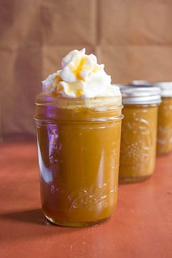 Here is a quick and simple way to have your Caramel Macchiato’s to go! You can make them in Mason Jars and just grab and go on your way out to work or whatever it is that you do. Just add your coffee, coffee syrup, espresso, half and half, shake and go!