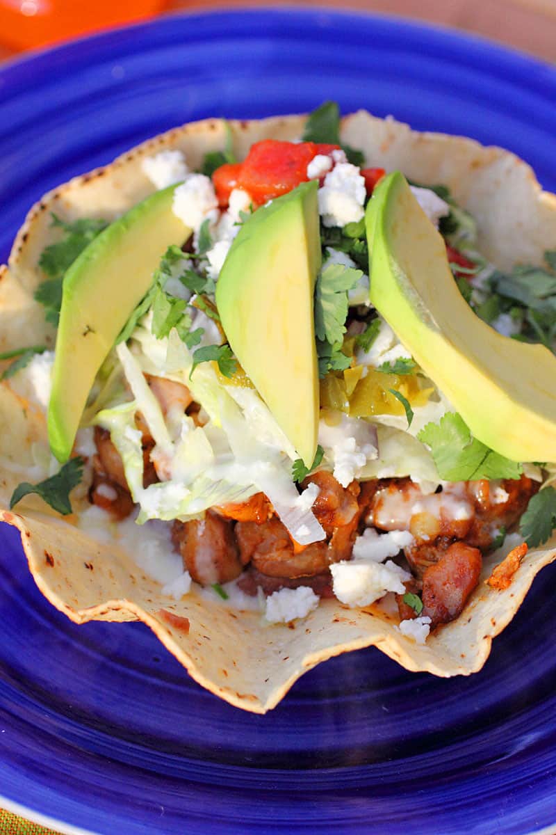 Most food bloggers almost always start a food blog because of what is in their hearts. There is a certain type of cooking, way of eating, or lifestyle that we are passionate about that we want to share with the world. However, there comes a time when we realize that our blogs are growing and we suddenly realize that we actually do have an audience. For some, there may come the slight pressure of always posting a recipe or something to keep the audience engaged and drive traffic. This really isn’t a good place for a blogger (in my opinion) because you become less authentic and lose the reason why the blog began initially. I am guilty of falling under that pressure. At times, I would think of something that I can make that would give me a good picture just to keep you guys attracted; although, I didn’t care for the recipe. I had to refocus. I took a week off in March and last month, I think. Although my traffic has been a few thousand short of what it normally is, I find peace in knowing that I am being true to my passion for my blog and sharing with you recipes that come straight from the heart and from my kitchen. This Easy Chicken Tostada Salad embodies the very idea of recipes I want to share with you. Easy, delicious, and cheap!