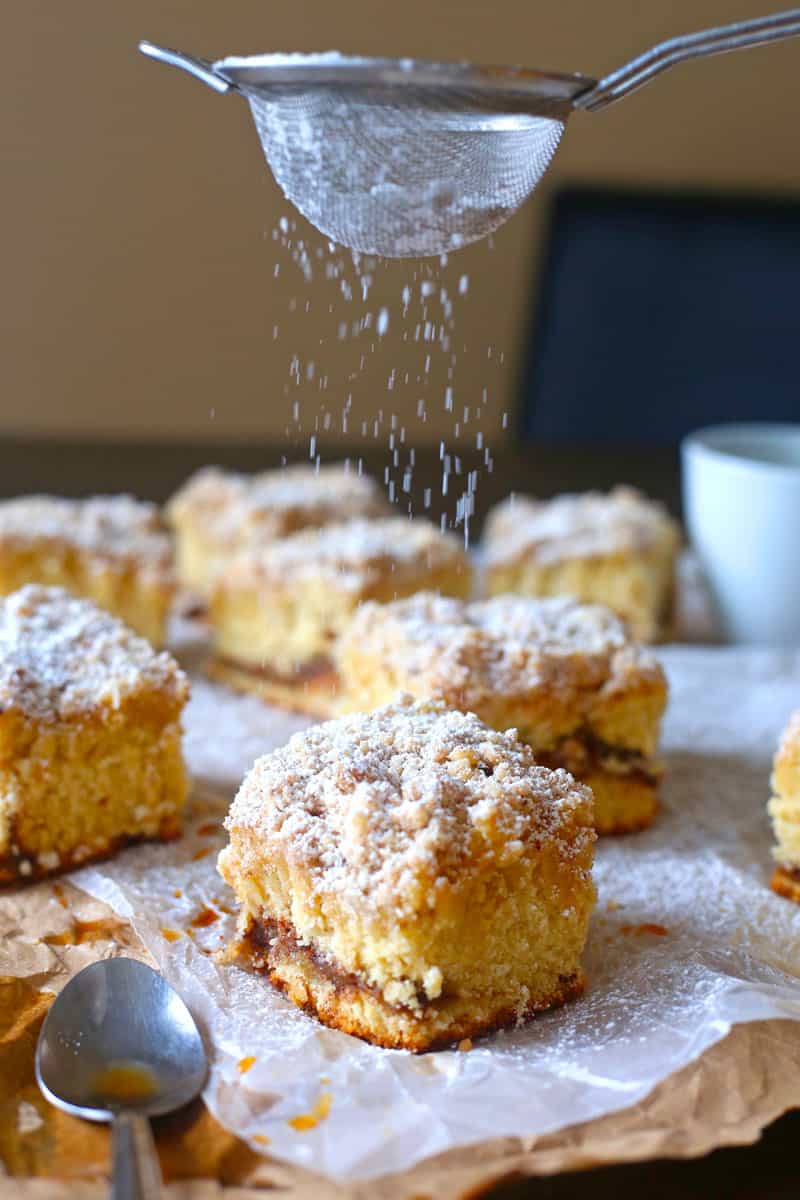 I am a sucker for a good Coffee Crumb Cake. If I drank coffee, I think I would eat Coffee Crumb Cake more often, actually. Let me tell you what I love the most about his Coffee Crumb Cake, the topping. This coffee cake has all the elements for an addictive and delicious coffee cake. When you bite into a slice of the cake its moist, buttery, has the touch of cinnamon, and that awesome crunchy crumble topping that I love. In fact, that element of this Coffee Cake that makes me go back for more is the topping. It is absolutely delicious.