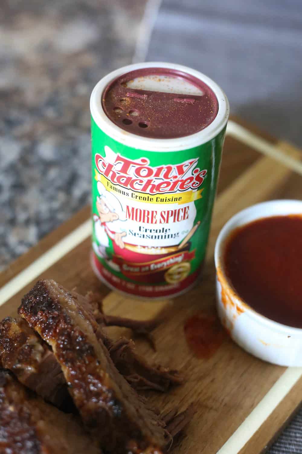 - Next, take about 2 tablespoons of yellow mustard and brush on each side of the brisket. Then, liberally season the brisket on both sides with 3 tablespoons of Tony Chachere’s “More Seasoning”. Wrap in plastic wrap and place in the fridge overnight.