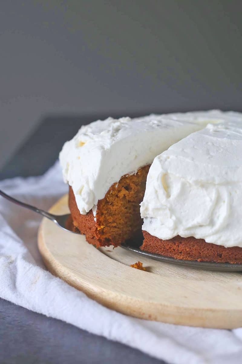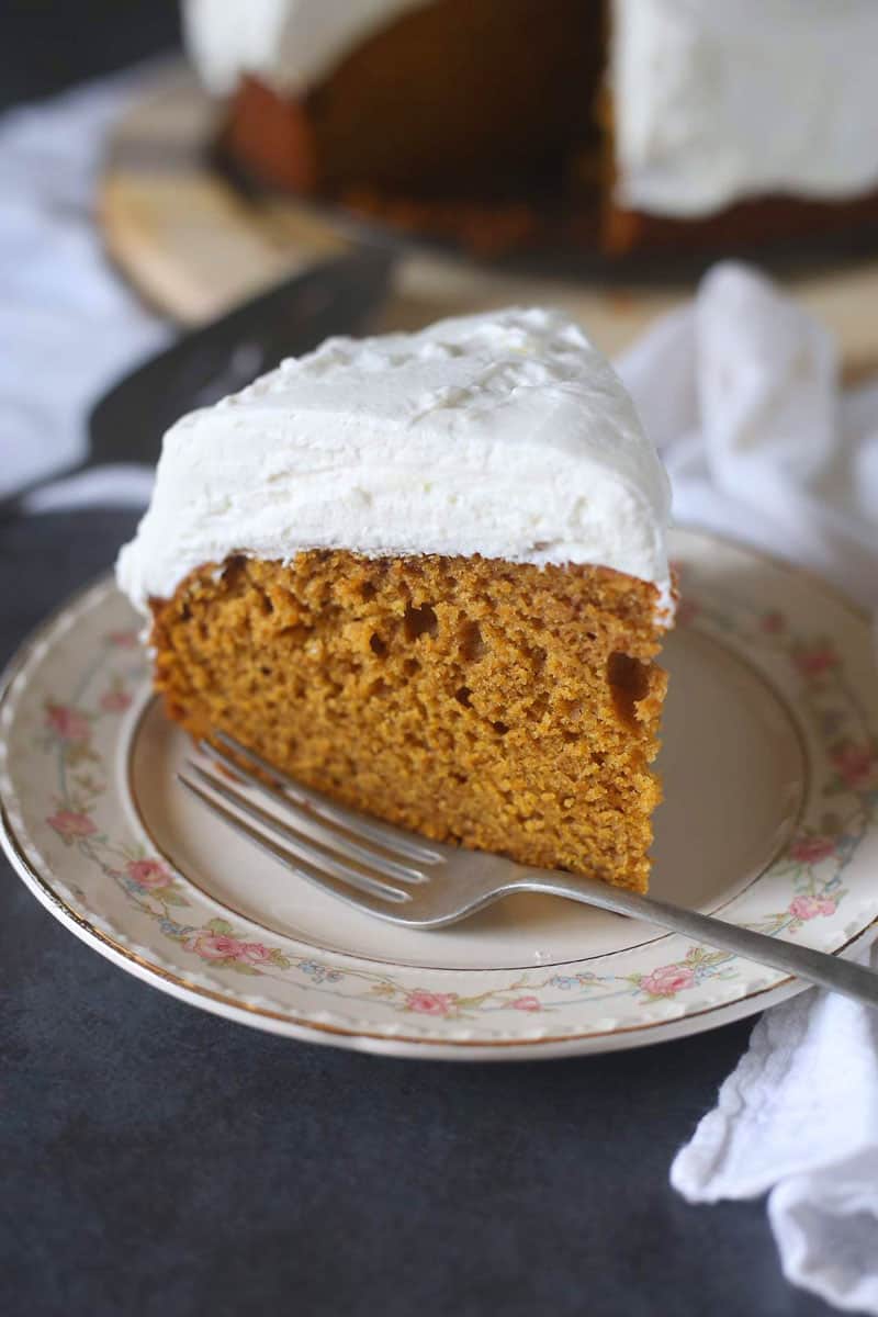 Quick and easy Pumpkin Cake with Whipped Topping is moist and completely tender. The Whipped topping mad with cream cheese adds a nice creamy layer that makes for the perfect bite.