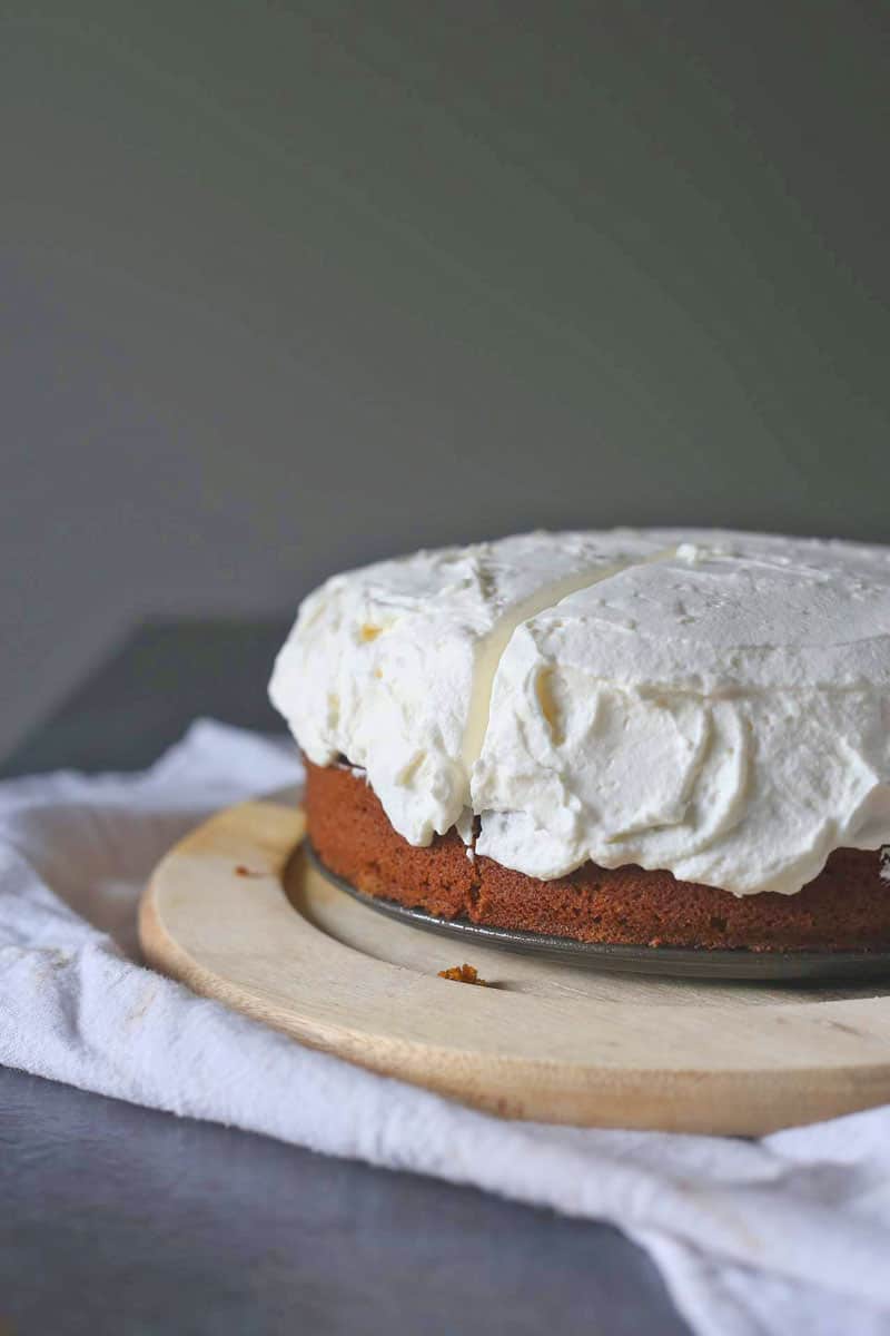 - Remove the clamp from the cake and add the whipped topping onto the cake as desired and serve.