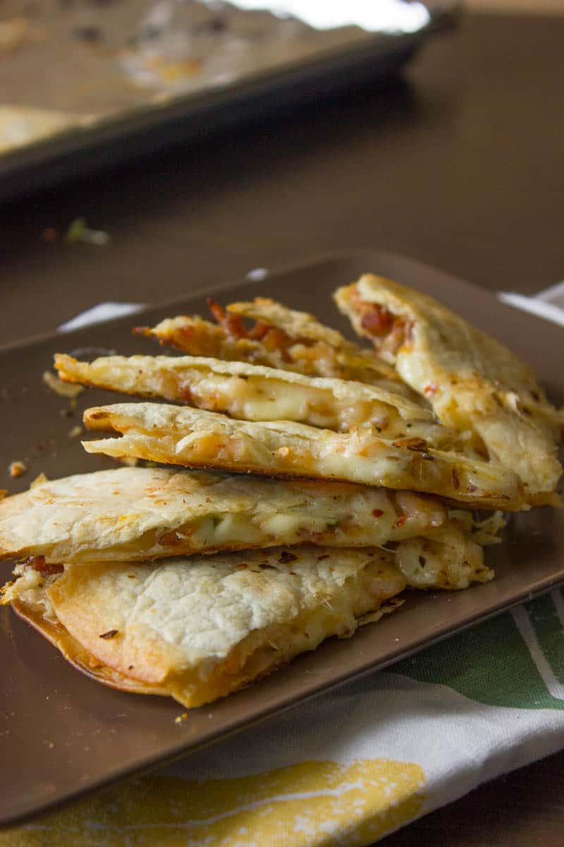 These Quesadillas are filled with Shrimp, Bacon, Jalapeno, and Gruyere Cheese. You will love these quesadillas and will work well with any side item.