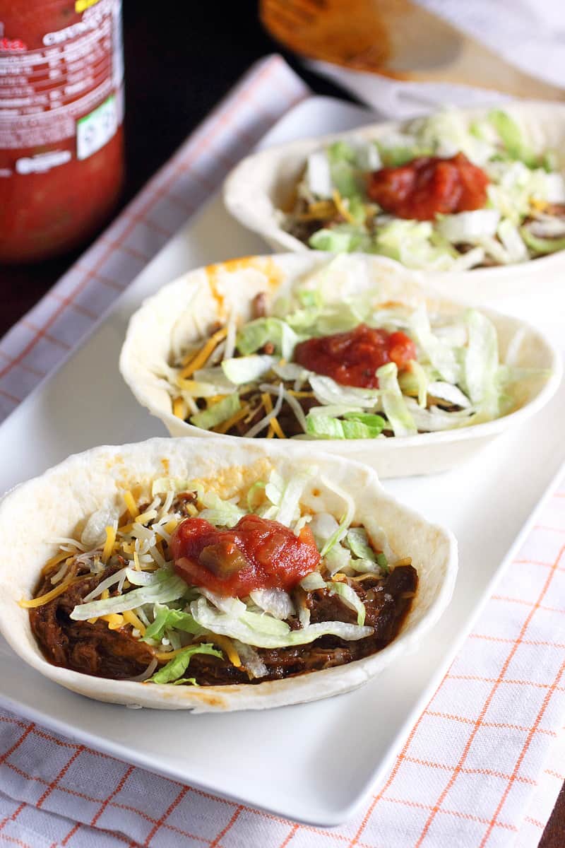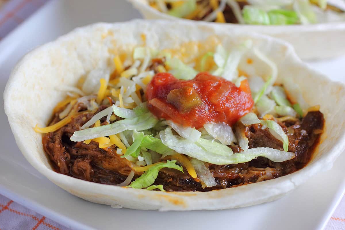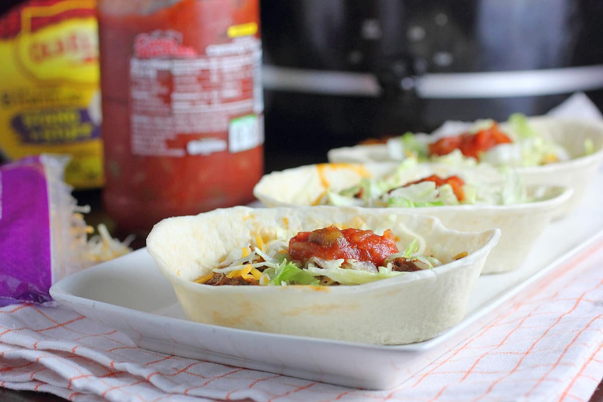 All you have to do it put a chuck roast in your slow cooker in the morning or before you go off to work, make sure you have some shredded lettuce (store brought or shred yourself) in a plastic container, set aside some of your favorite taco topping, and prepare when you get home! What makes this recipe so amazing is El Paso’s Roasted Tomato taco sauce. It adds bold and delicious flavor to the beef. It is such an awesome and easy dish.