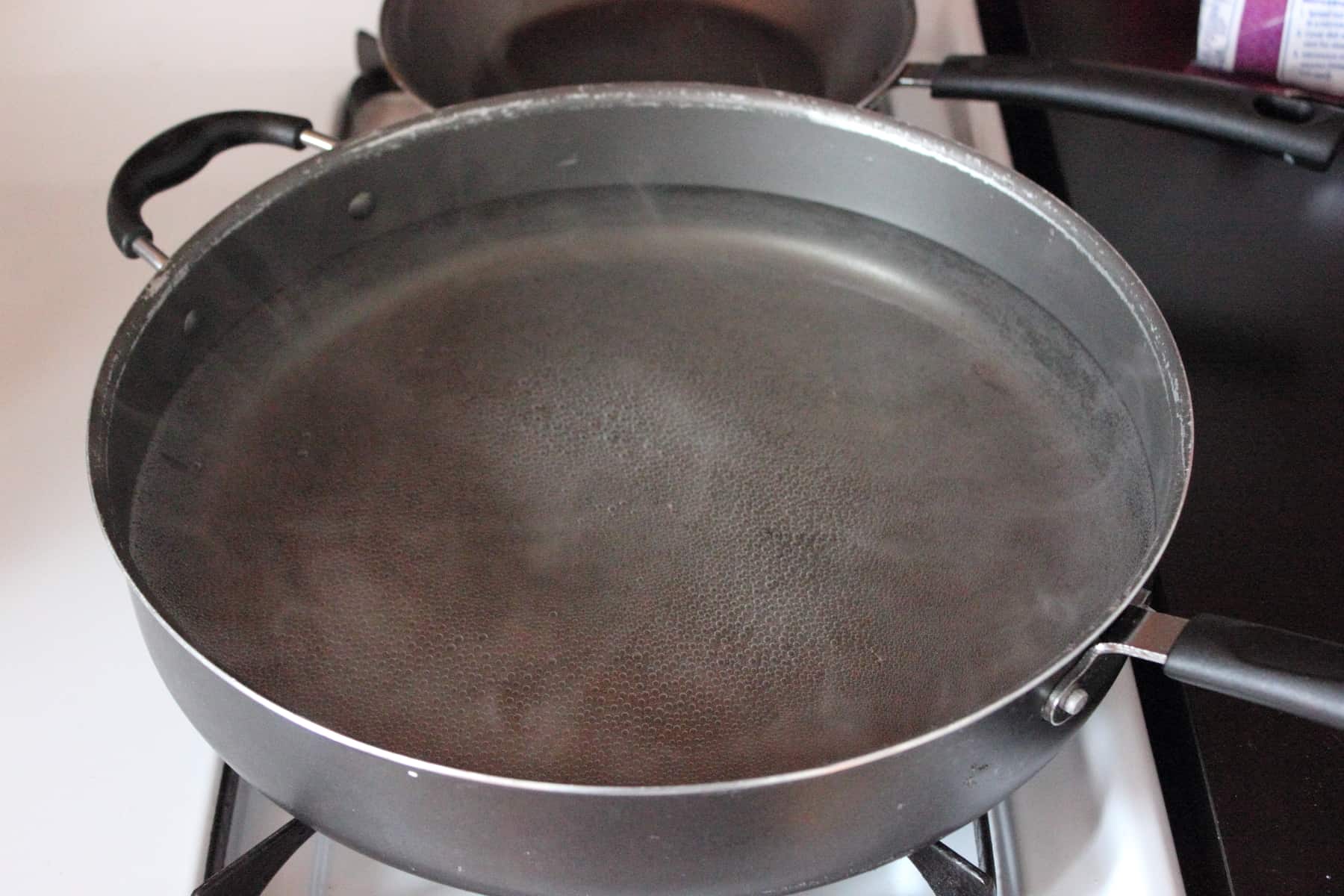 - – Bring a pot of water and add the vinegar. Bring the pot to a slight simmer, not quite boiling, basically, steaming.