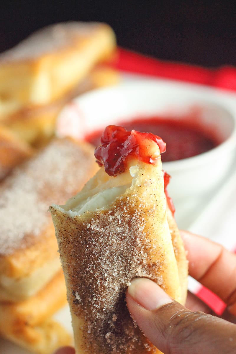 These Fried Cheesecake Rolls are great and perfect for small dinner gatherings if you don’t want to The strawberry sauce is my personal favorite and I will defend it with my whole chest. But these fried cheesecake rolls are honestly delicious with a lot of different dipping sauces. Here’s what I’d try: