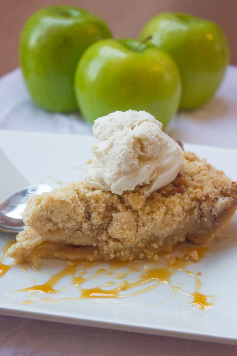 The apples aren’t really fried, more like sauteed in butter to get a slight crisp around the edges. This method does add some texture to the pie, which makes it more enjoyable to eat. Not only do you have the crisp and freshness of the apples, but you have the delicate crunch of the topping, which I added some pecans to add more depth. Oh! Did I forget to mention that I added some rum to the apple pie filling? This is absolutely my favorite apple pie. And I am not saying this because I made it but, it is the best apple pie I ever had. I hope that you feel the same way.