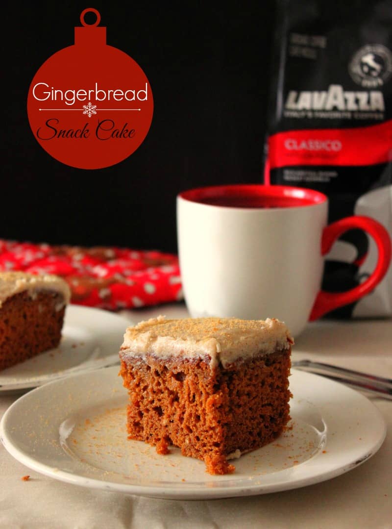 Let’s talk about this Gingerbread Snack Cake. Well……its easy. It’s perfect to make on Christmas Eve or for a holiday party that everyone will enjoy. Well, everyone that like gingerbread that is. It is also perfect with coffee. How many coffee lovers are out there? All of you huh? Well have you ever tried coffee from the brand Lavazza? Well you should! I normally don’t drink coffee, but I do love the way it smells. However, I decided to try the Classico flavor from Lavazza and it is pretty darn good! Very fresh and strong (any coffee is strong to me). I highly recommend it! If you combine the coffee with this cake, man o man! If that doesn’t get you in the Christmas spirit I don’t know what will.