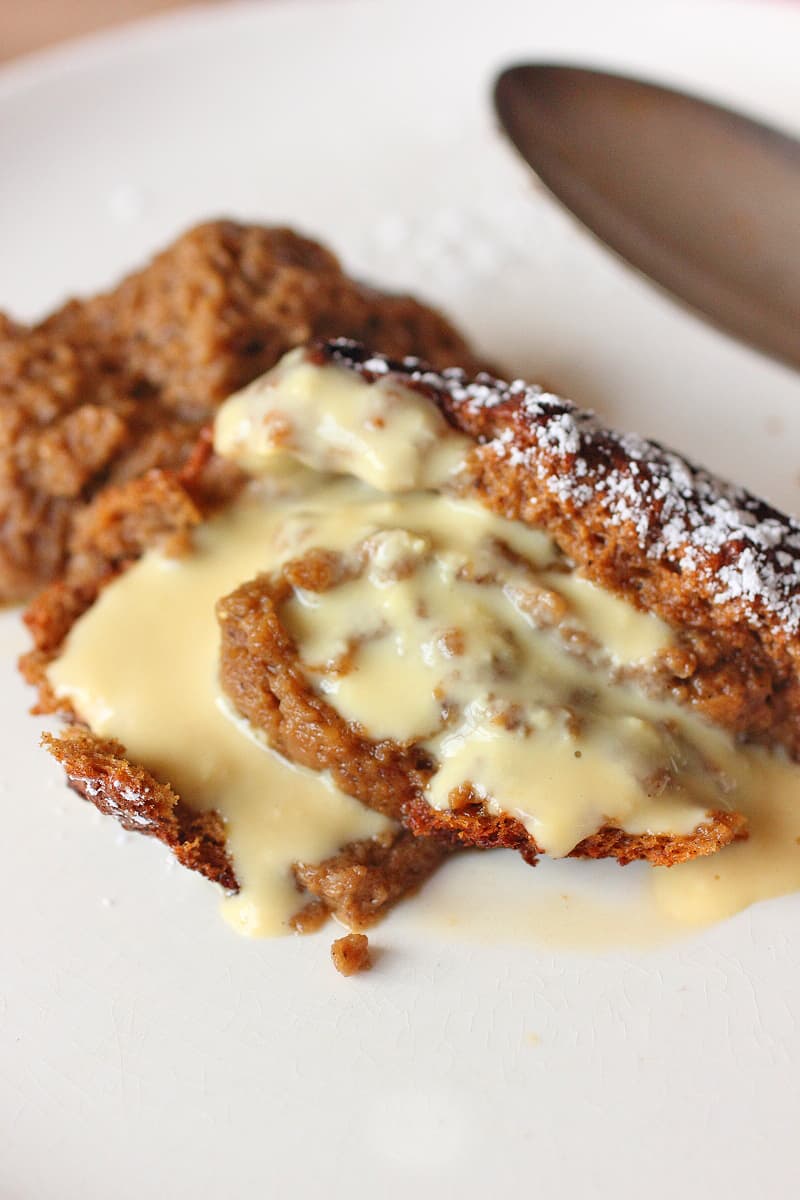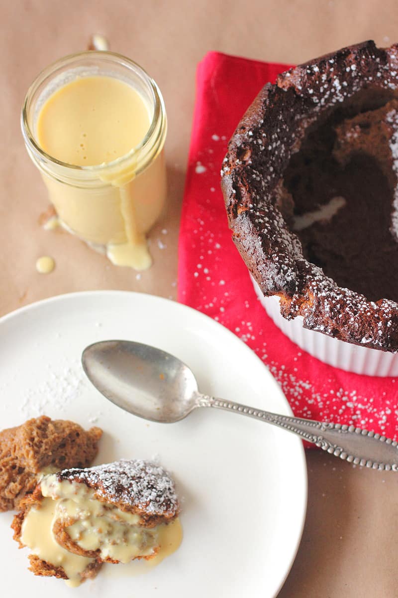 There was also some advice and explanations on air bubbles, expansion, and science. Although it is good to have that knowledge, I don’t think you care too much about that stuff. In any case, souffles are our friend. Sure they are temperamental and will almost inevitable fall in the middle, but if you have good flavor and a good sauce to go along with it, you will be fine. That is why I love this Gingerbread Souffle with the Maple Creme Anglaise Sauce.