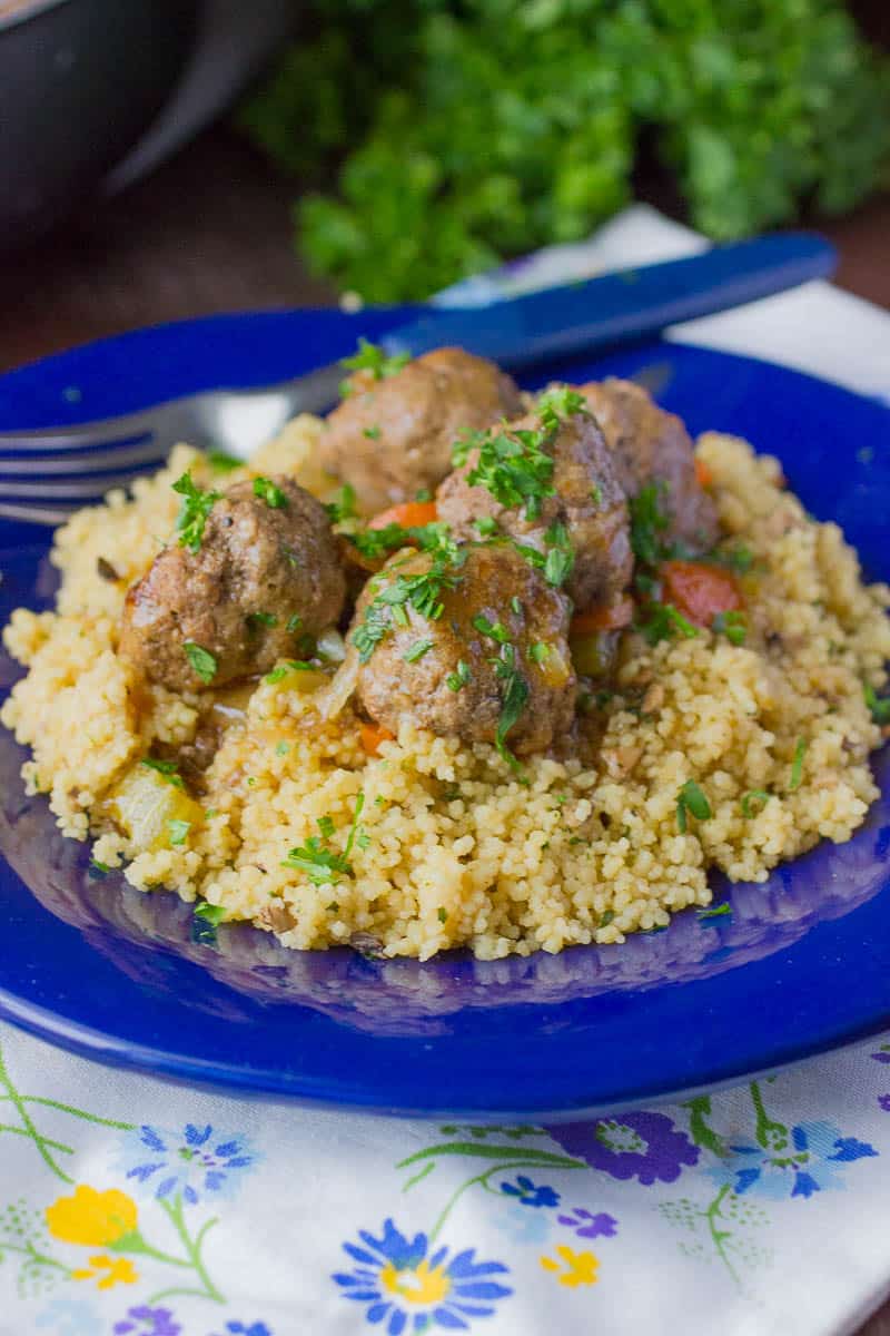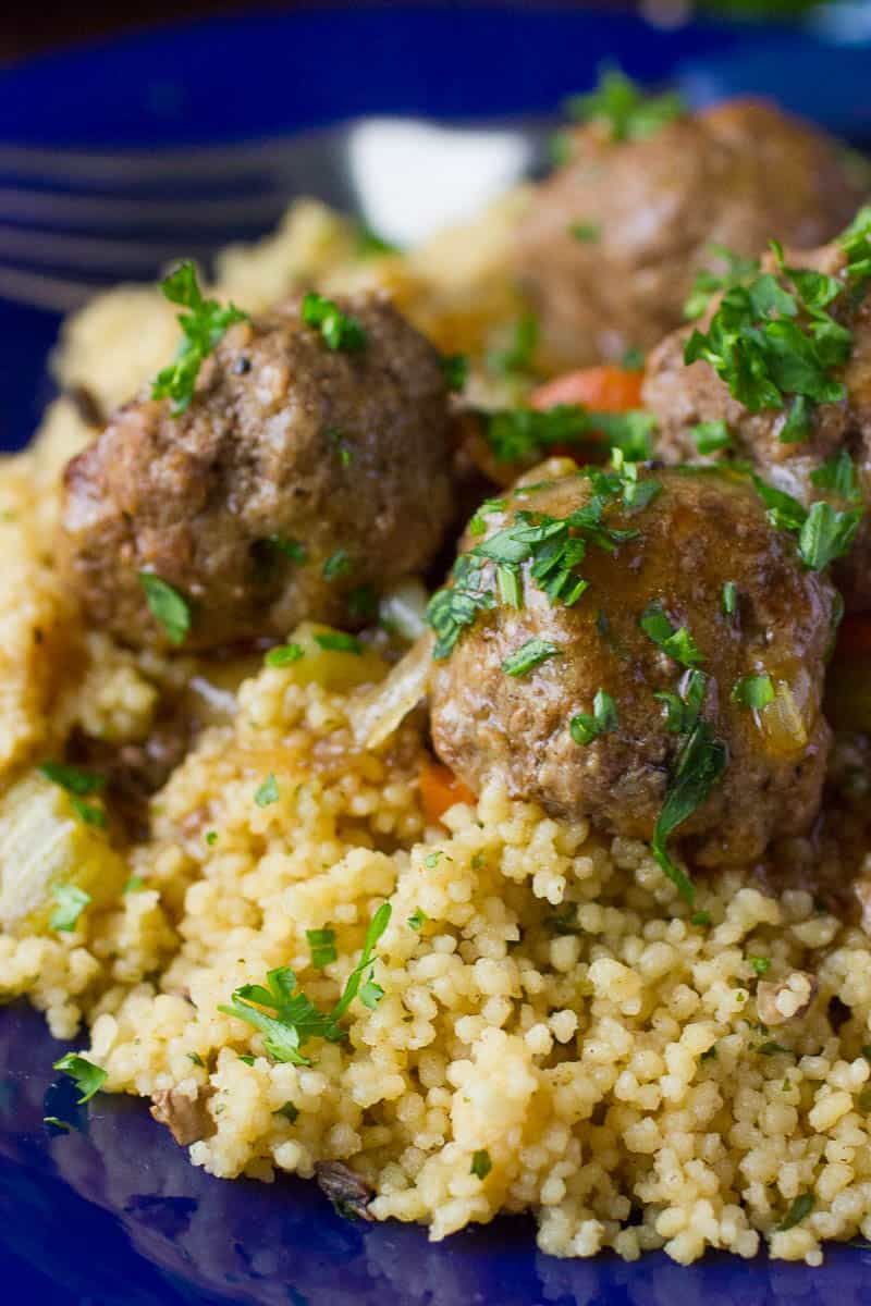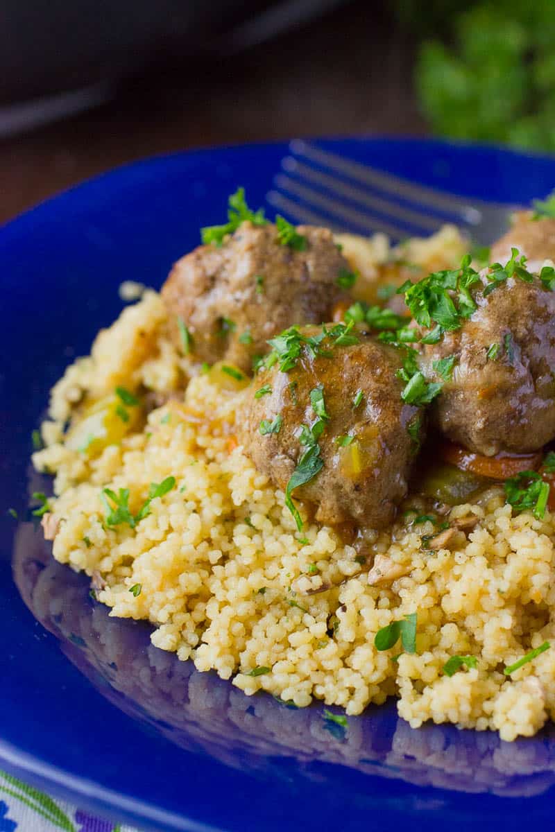 See! You can take any traditional meal and make it healthier by substituting some of the ingredients without compromising fullness or flavor. My fiance and I LOVED this dish so much that we found ourselves craving it. I’m craving it now. It is so amazingly good and good for you. Instead of serving these meatballs with egg noodles or mashed potatoes, substitute by serving with mashed cauliflower, mashed sweet potatoes, quinoa, brown rice, or, like we did, couscous. If you are going to use couscous try Near East Wild Mushroom flavor. Super awesome!
