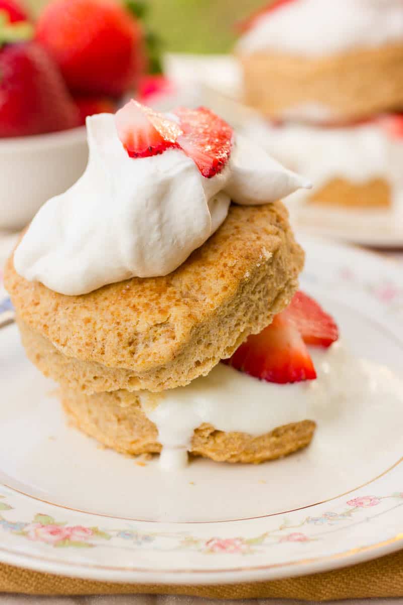 I love your philosophy on finding that balance and making subtle, healthier changes instead of going on a ‘crazy crash diet.’ It’s so inspiring that you found a way to create a classic dessert like strawberry shortcake using organic, high-fiber, and lower-sugar ingredients! The switch to Bob Red Mill’s Whole Wheat Flour and especially the choice of TruWhip (2 grams of sugar—amazing!) really caught my eye.