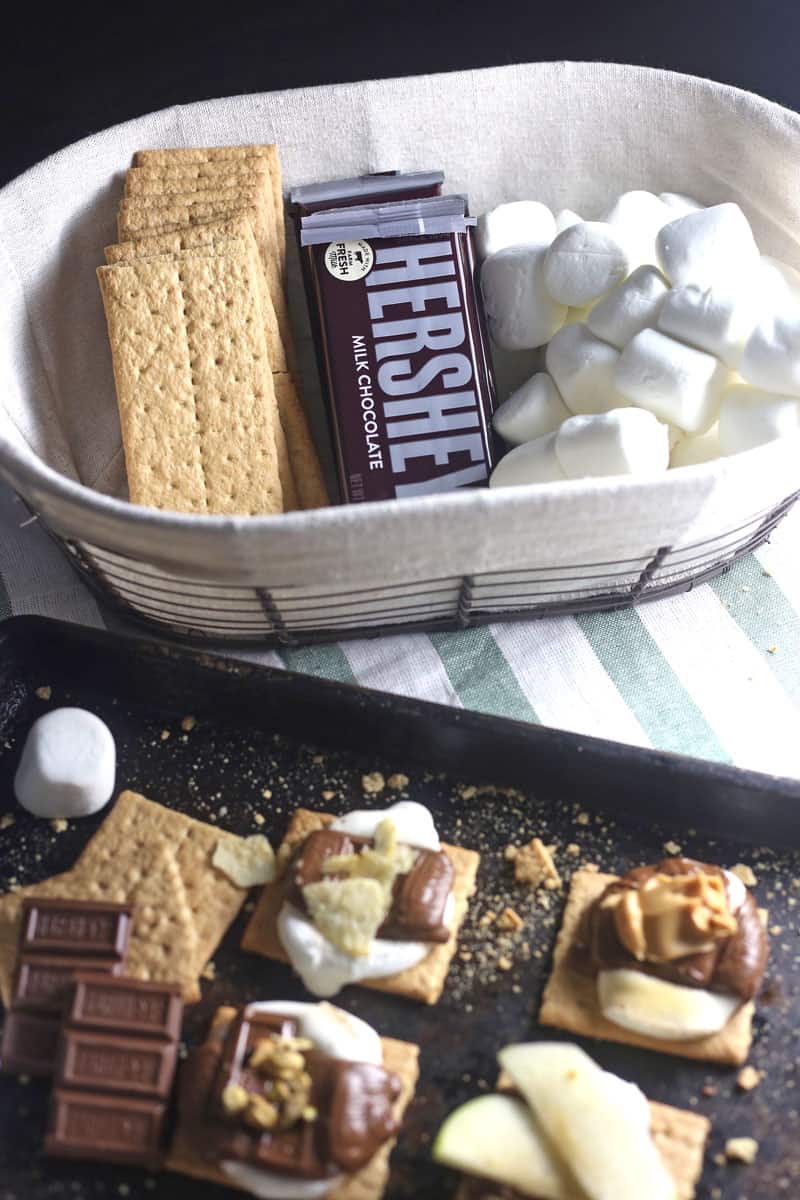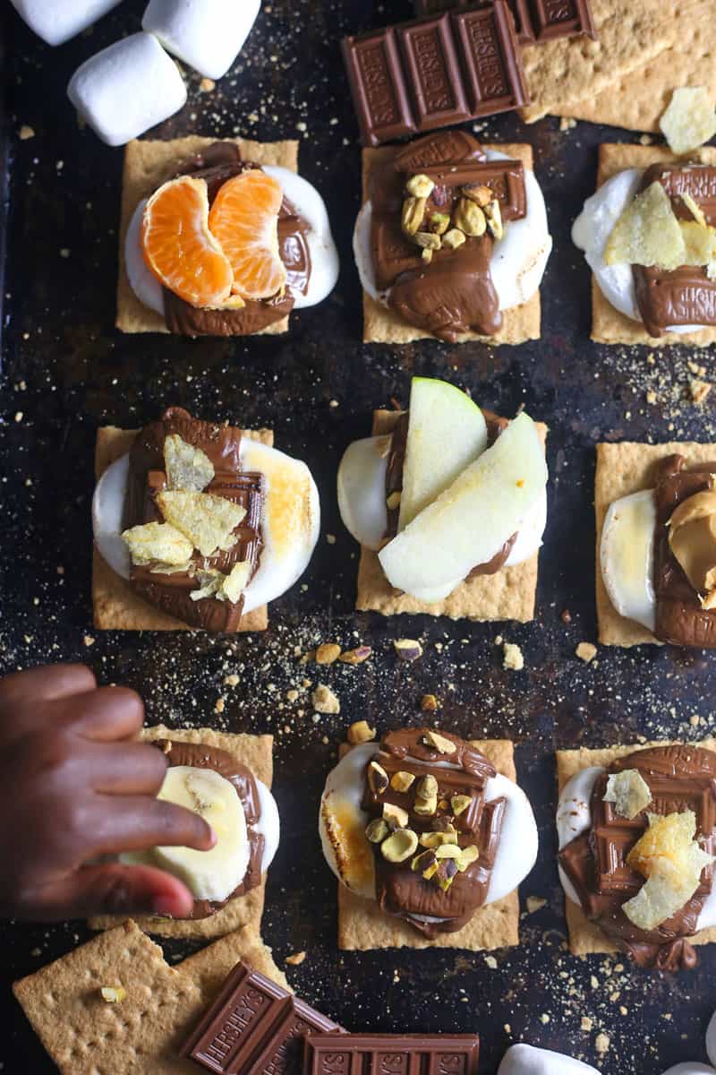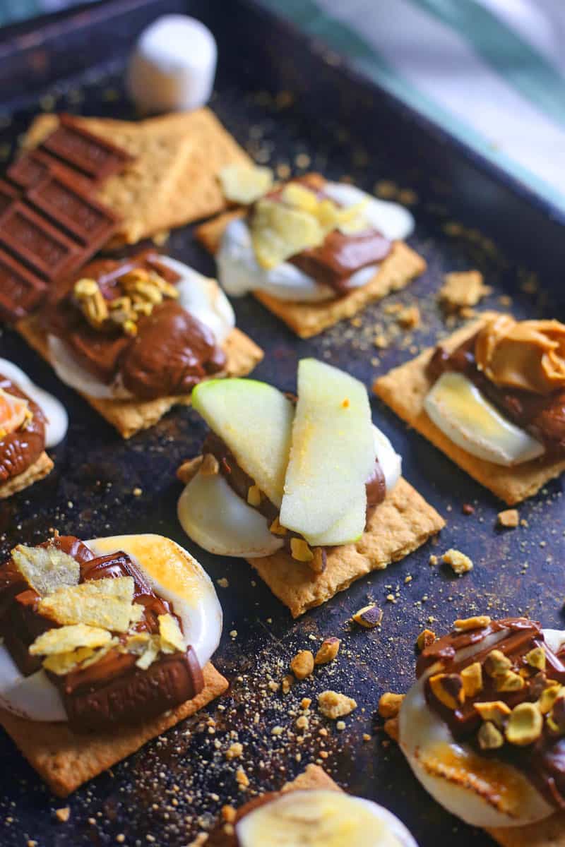 Depending on the circumstances, either way is good. When making s’mores for my very picky eater toddler, I have also started to add different toppings as well. He doesn’t know what a s’more is quite yet, so I had to put some toppings that he’d recognize on top to get him to trust the deliciousness.