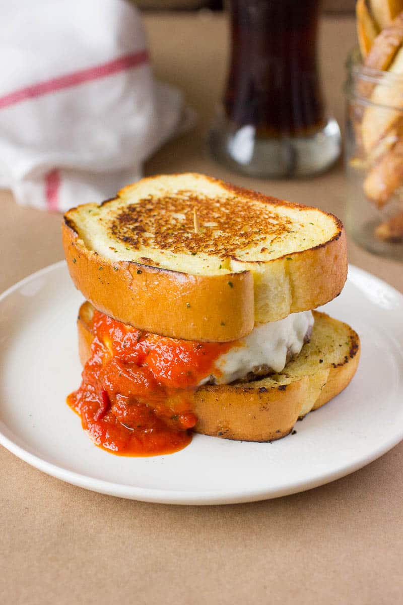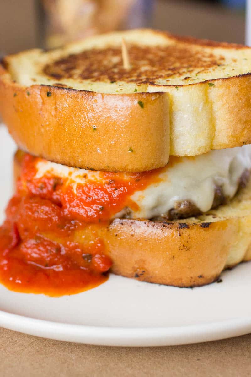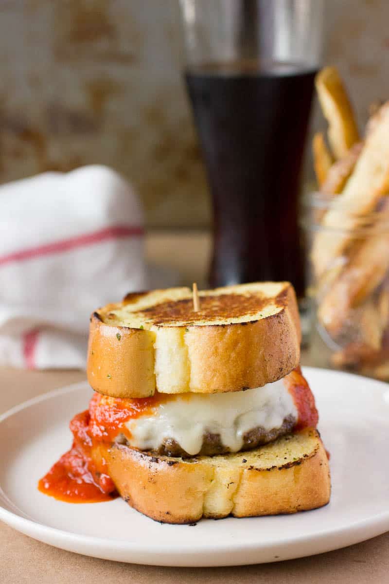 This Italian Meatball Burger is made with a ton of flavor, topped off with mozzarella cheese, marinara sauce and served on Garlic Texas Toast.