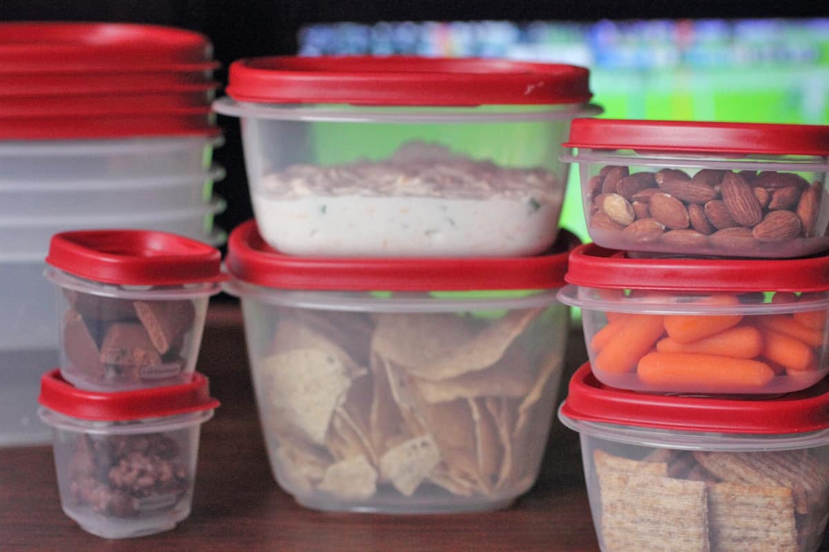 When I would make “The Dip” I would mix everything in a bowl and hope that it didn’t spill in the car. Well now with the Rubber Maid © Party Platter, I can transport my food with ease and peace of mind. All I have to do is make my dip, put in the middle container that will twist and seal, place four variety dippers in the compartments of the platter, seal it in its airtight container, and go to the game! The best part is that the container is 100% BPA free, microwaveable, dishwasher and freezer safe. That isn’t the best part of these containers! They all comes with a secure lid that creates a tight seal and allows for safe and easy transportation and you can stack them upon each other!