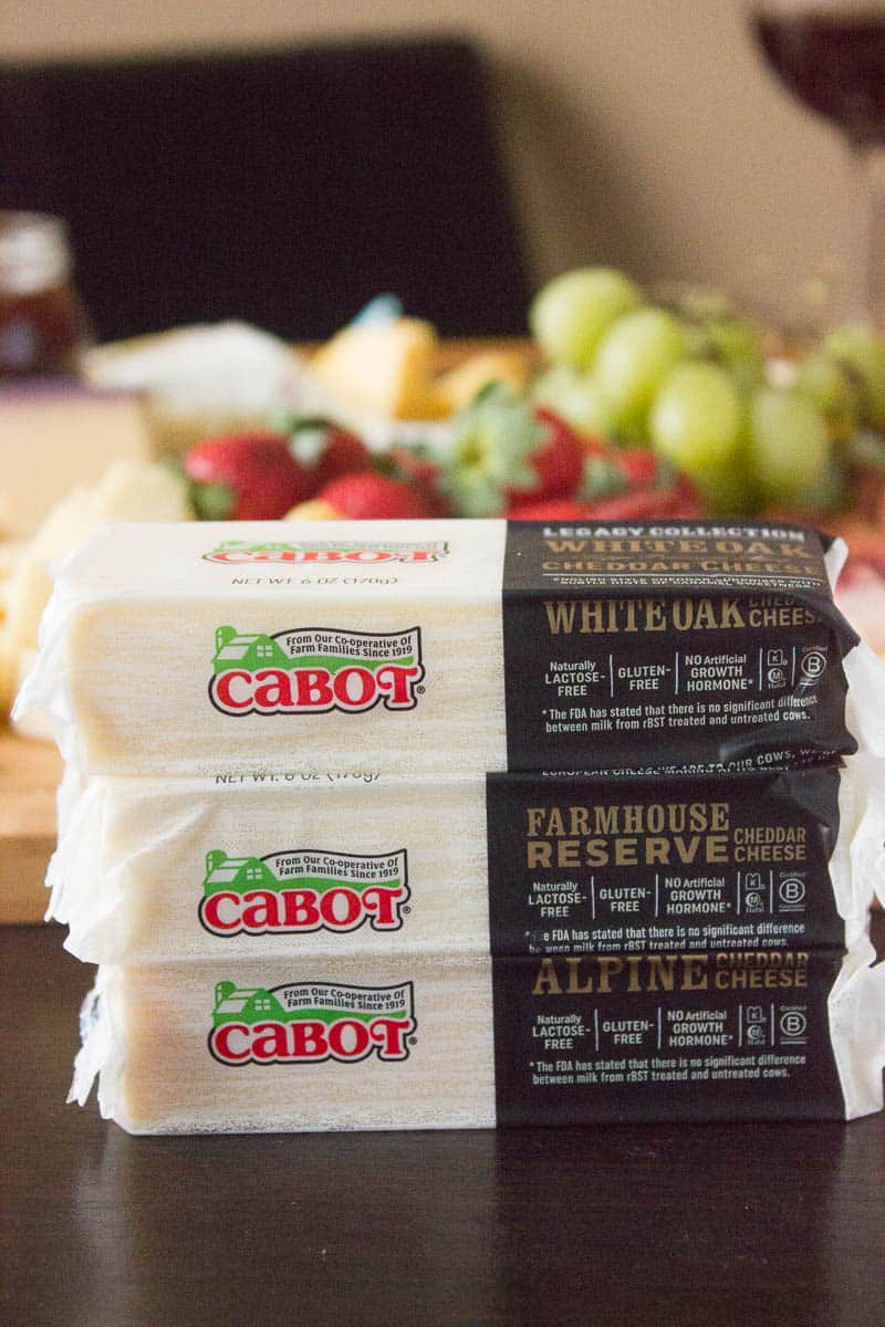 First let me say, creating a cheese platter wasn’t easy. I always thought to have fancy cheeses along with fancy crackers and fancy wine was for fancy people. I don’t consider myself “fancy” at all. I am that person who will buy a cheese platter already put together and buy some Ritz crackers and call it a day. I leave the fancy stuff up to my more fancy friends. Well, putting together this cheese platter I realized that anyone can put together a fabulous cheese platter. Thanks to Cabot Cheese, they have an awesome choice of cheeses that is fit for any cheese platter!