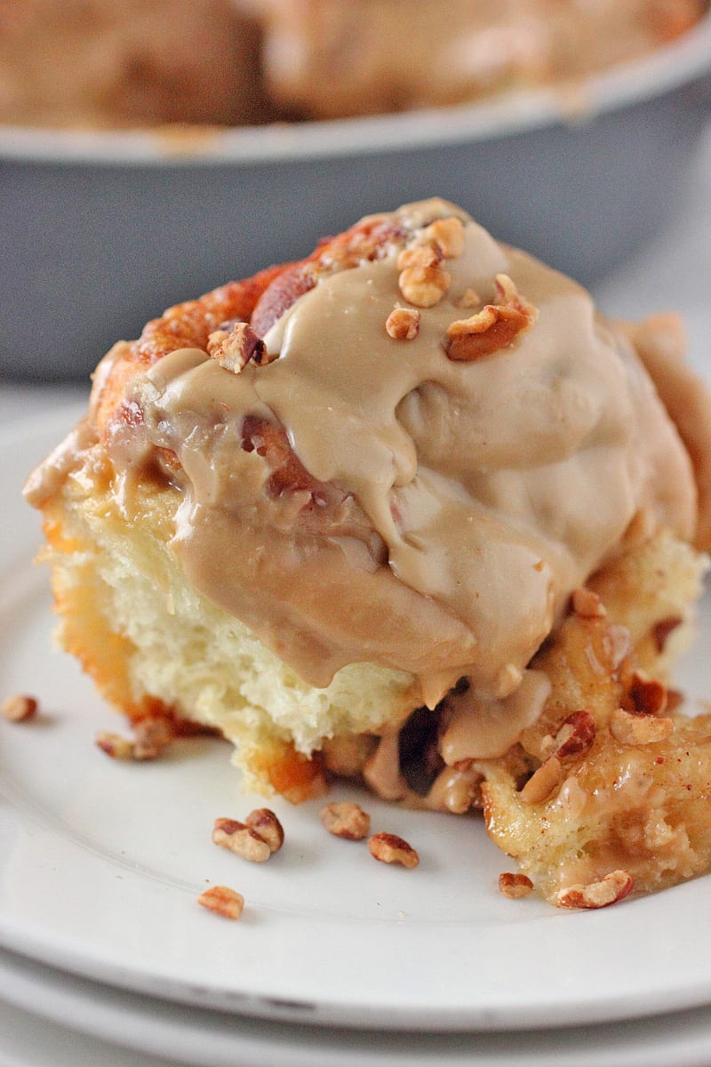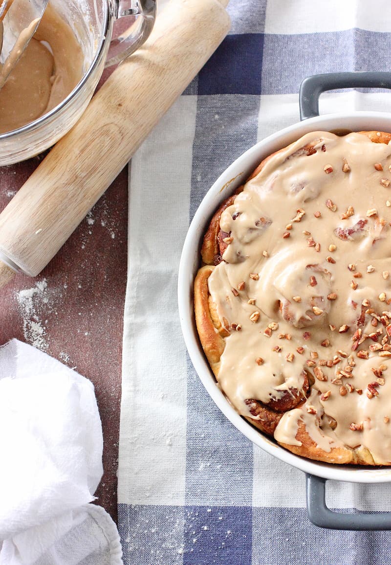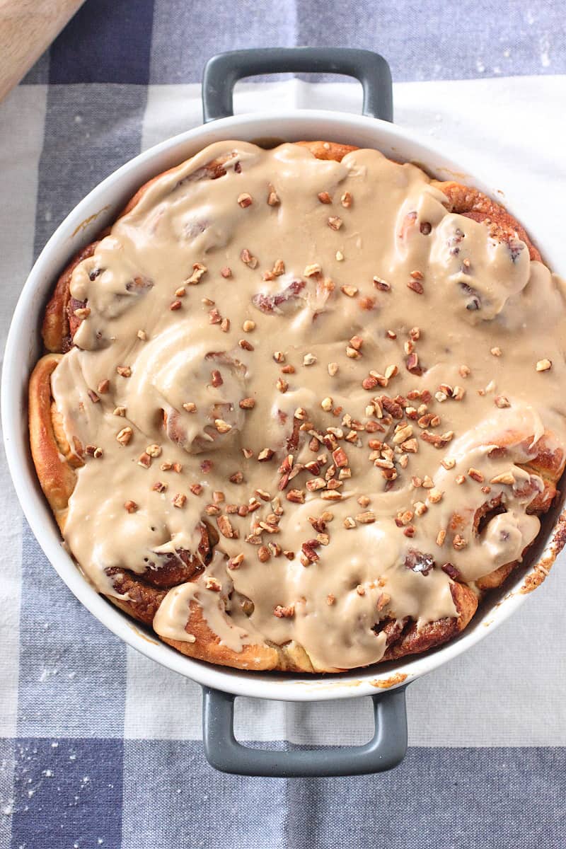 I’m not sure cinnamon rolls can be more perfect, but the addition of maple and pecan make it absolutely AMAZING! This is so perfect for sharing with friends at brunch!