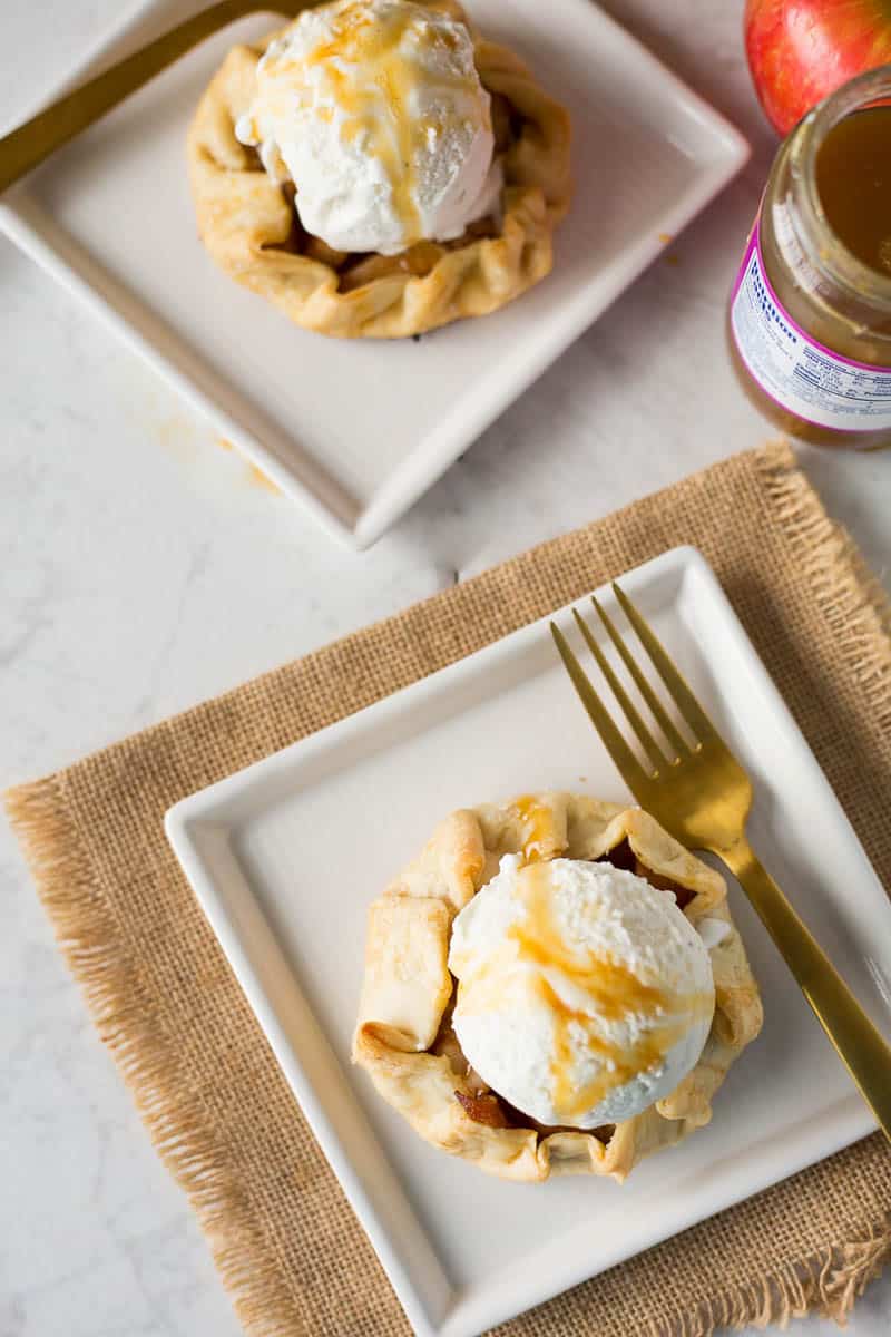 This Mini Apple Crostatas Recipe is perfect for small dinner parties, appetizers, or a treat! Fill with sweet and tart Granny Smith apples and serve with ice cream!